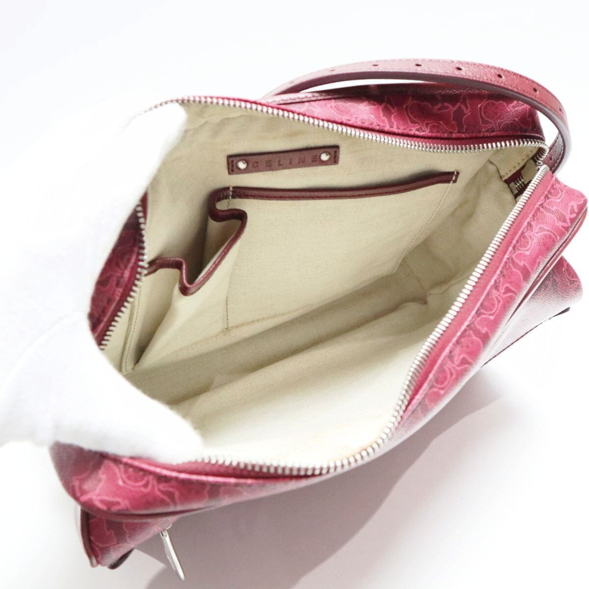 商品名:CELINE セリーヌ サルキー 馬車柄 PVC/レザー ショルダーバッグ ボルドー K11-k007