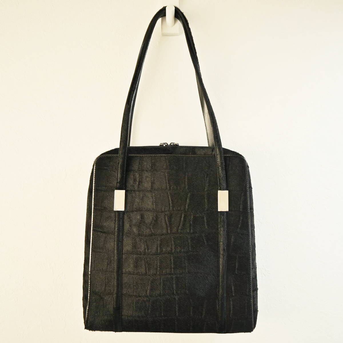 商品名:GUCCI オールドグッチ ハラコ/レザー ショルダーバッグ トートバッグ ブラック