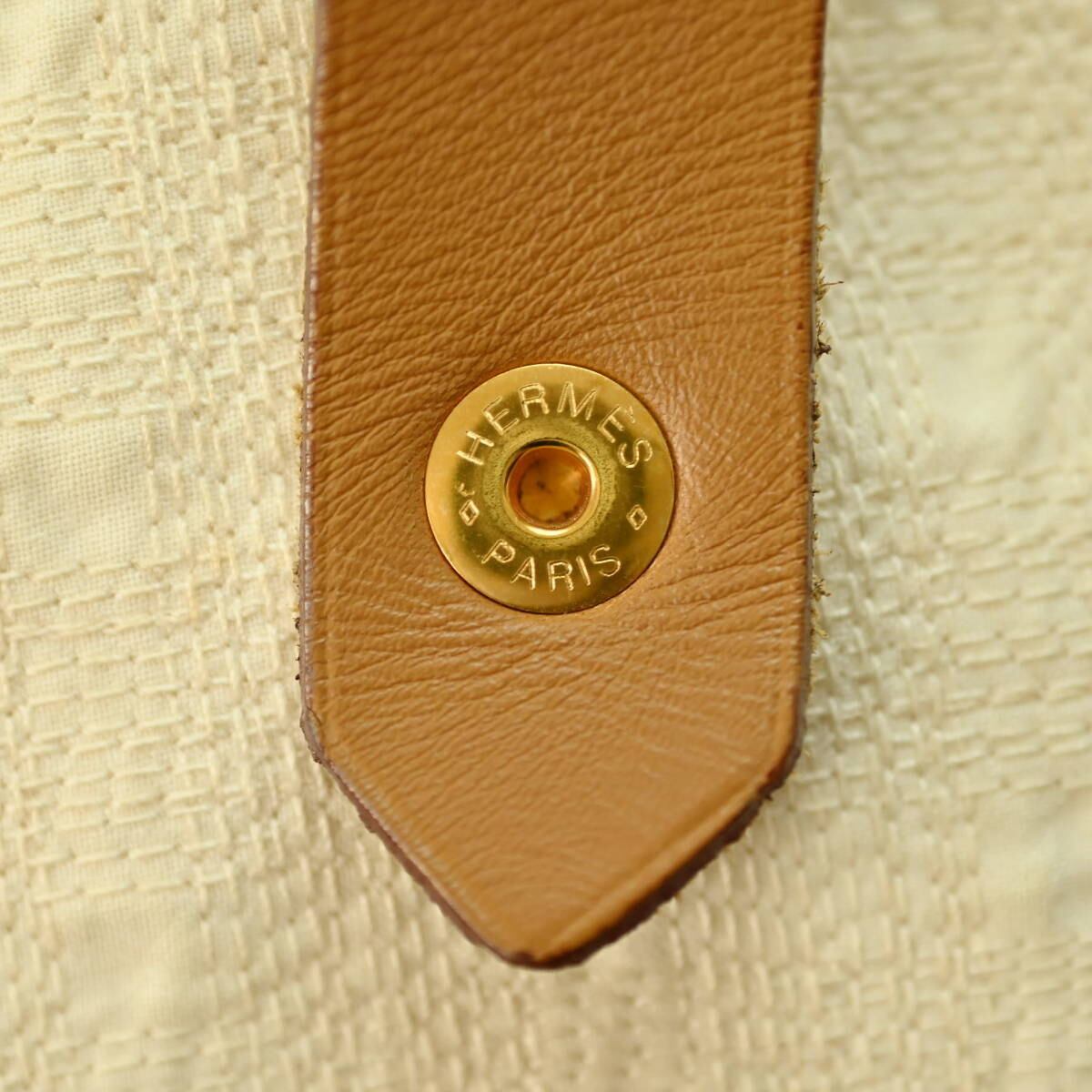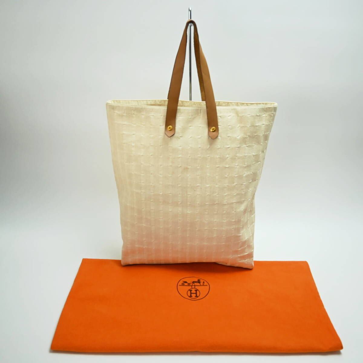 HERMES エルメス アメダバGM コットン/レザー トートバッグ ホワイト/チャ S2511-k044
