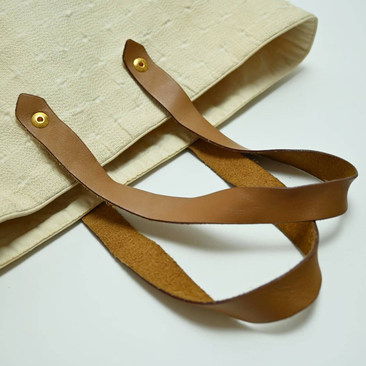 商品名:HERMES エルメス アメダバGM コットン/レザー トートバッグ ホワイト/チャ