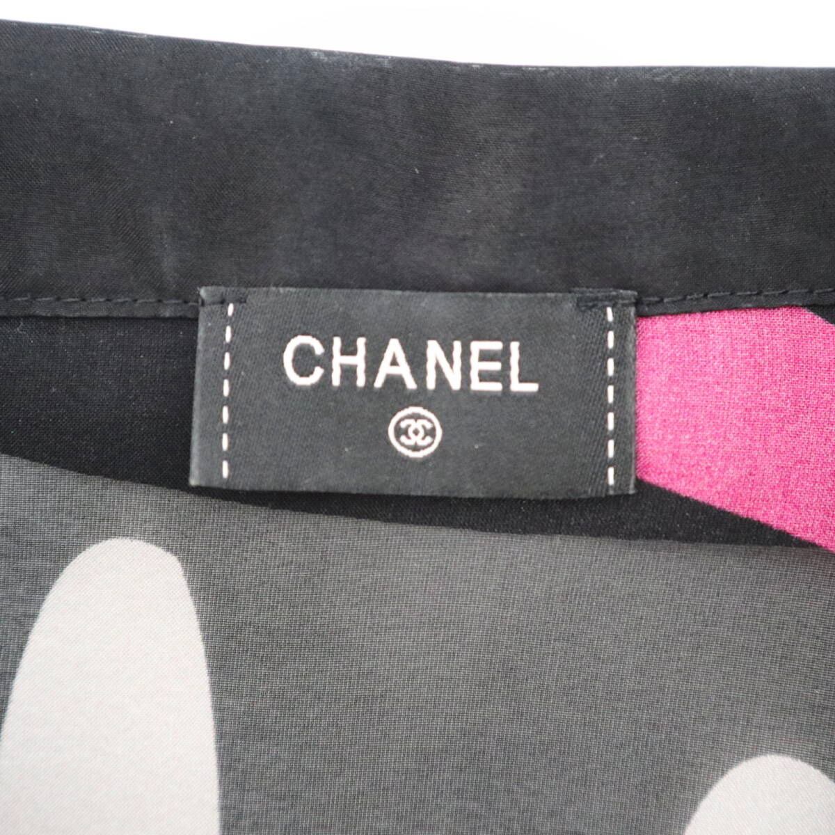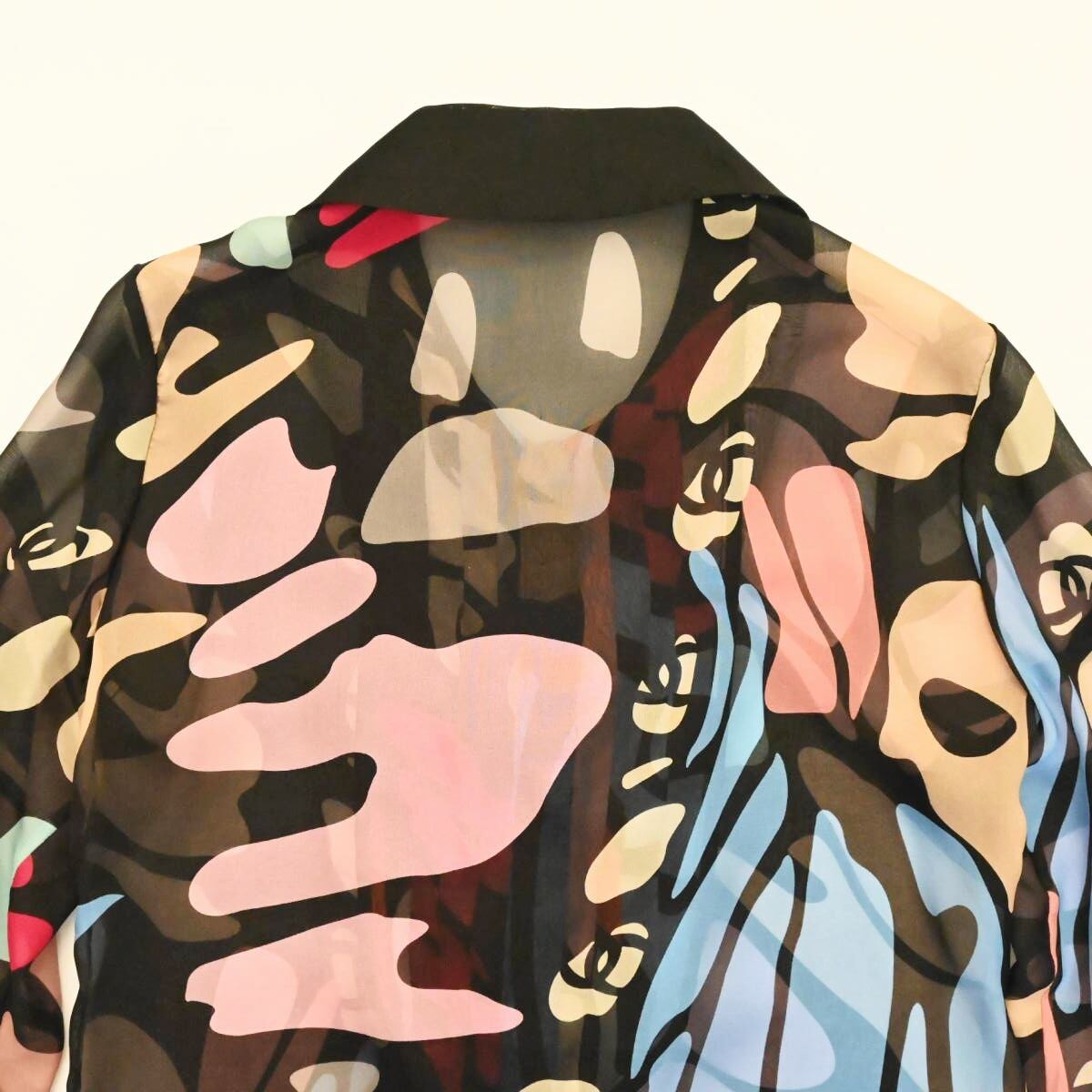 商品名:美品 CHANEL シャネル ココマーク/デザイン柄 ココボタン シルク 長袖 ブラウス トップス 36 マルチカラー