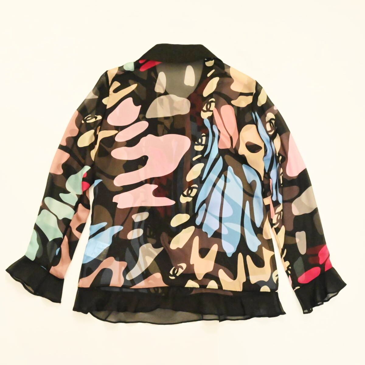 美品 CHANEL シャネル ココマーク/デザイン柄 ココボタン シルク 長袖 ブラウス トップス 36 マルチカラー T2512-k011