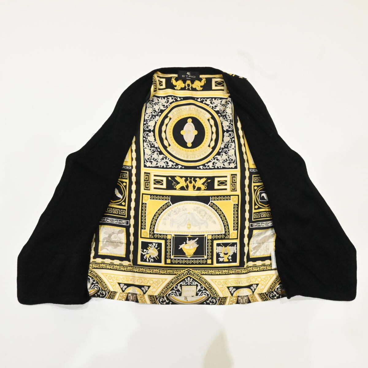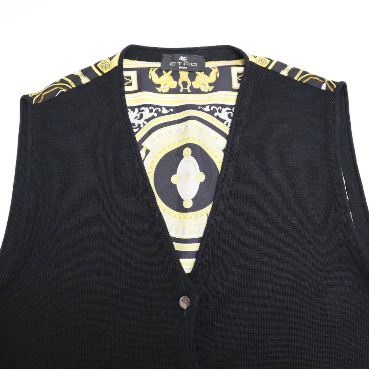 商品名:ETRO TRIONFI E SOFFITTI DI SANPIETROBURGO エトロ 総柄 ニットウール/シルク ベスト 44 ブラック/ゴールド
