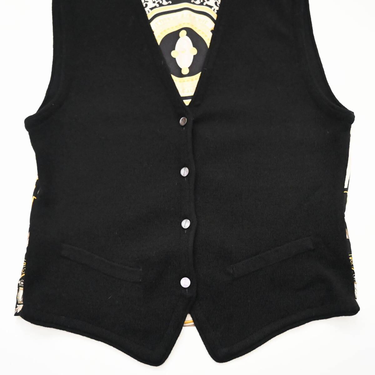 ETRO TRIONFI E SOFFITTI DI SANPIETROBURGO エトロ 総柄 ニットウール/シルク ベスト 44 ブラック/ゴールド T2511-k096