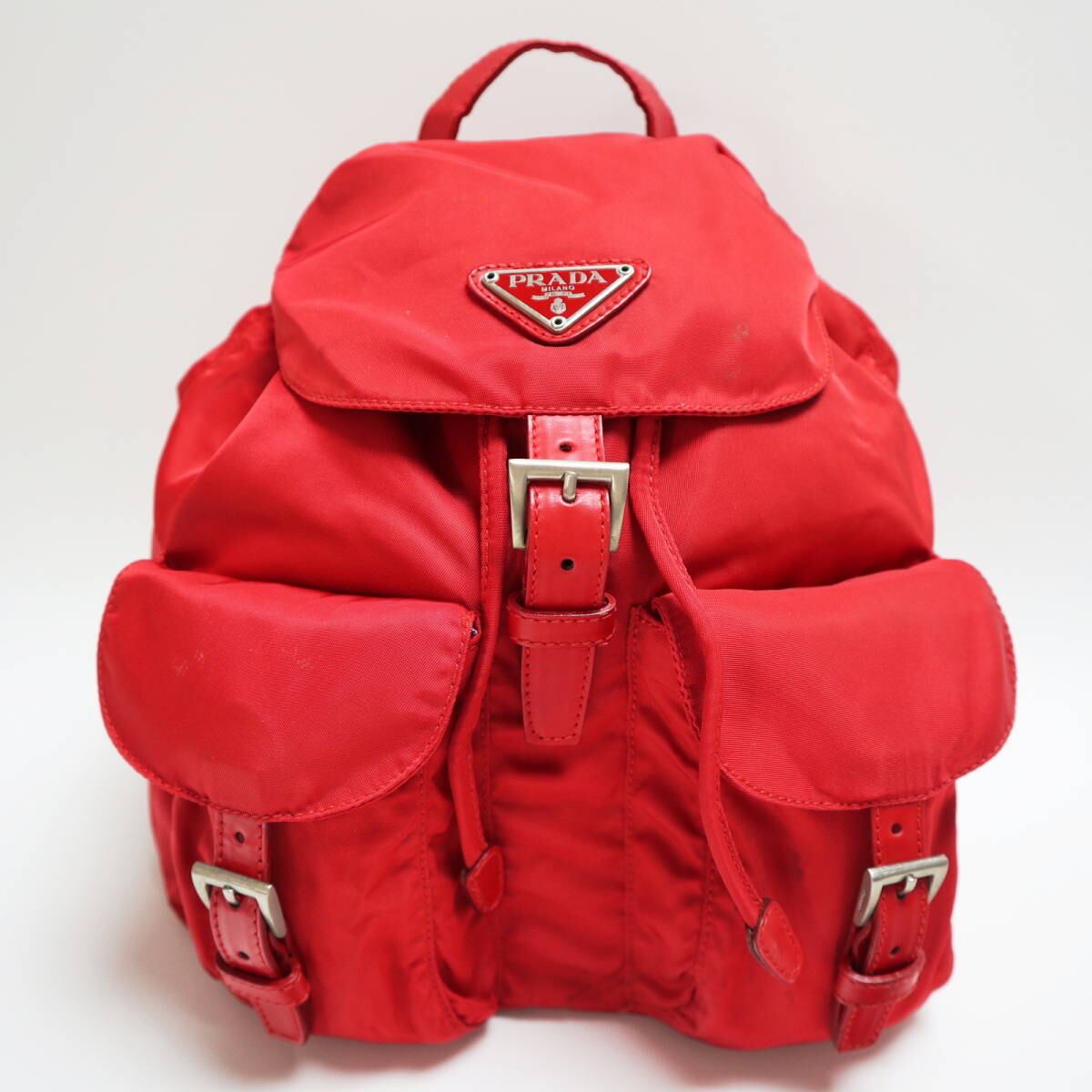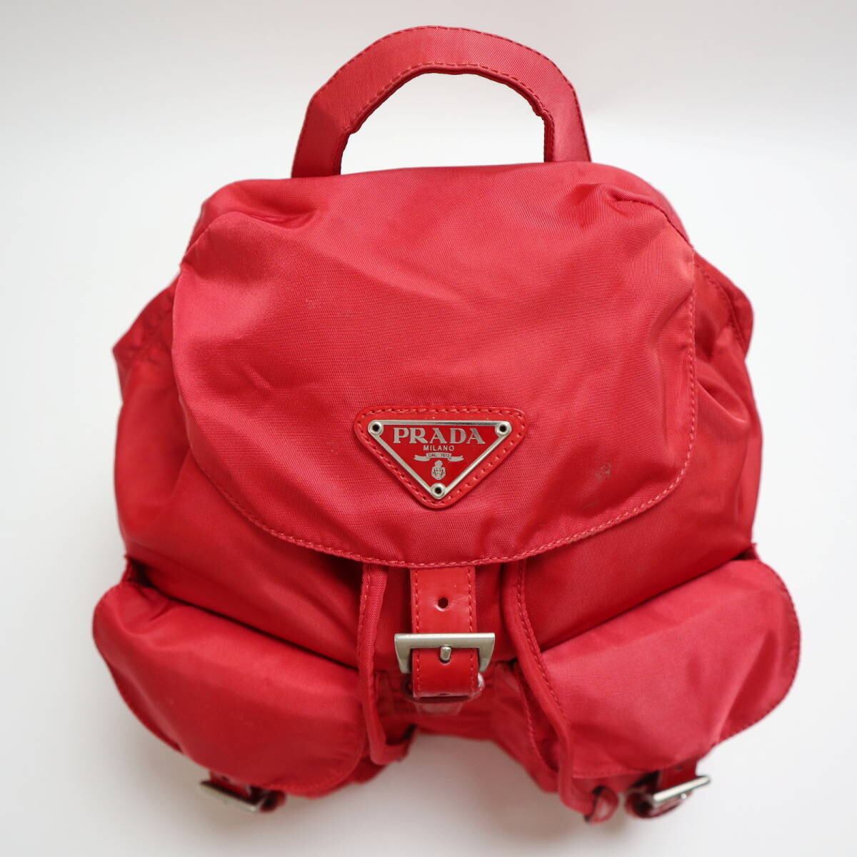 PRADA プラダ ロゴプレート ナイロン/レザー ミニバックパック リュック レッド S2511-k091