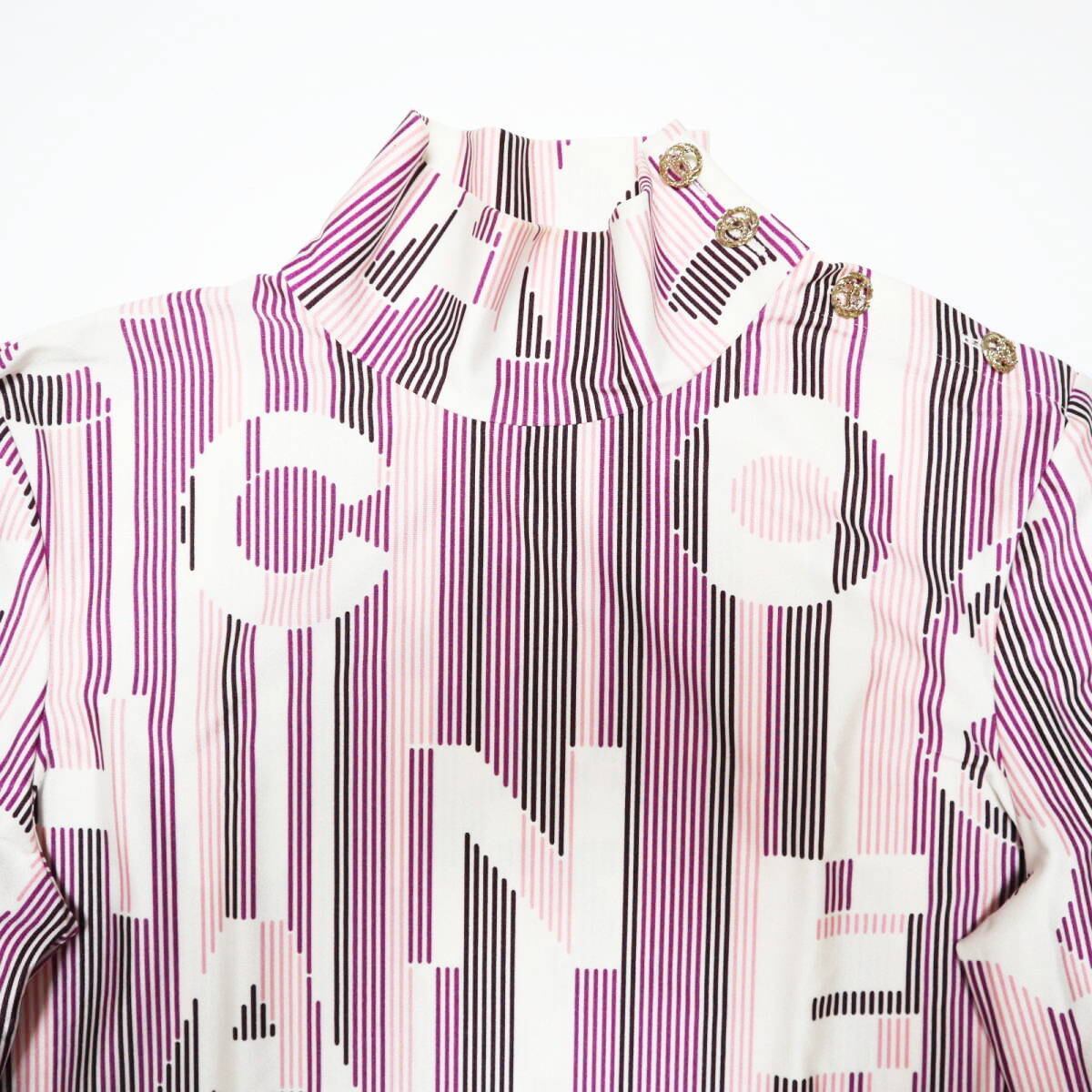 商品名:美品 CHANEL シャネル ココマーク ココボタン ポリアミド/ポリウレタン 長袖 ブラウス トップス 44 ピンク