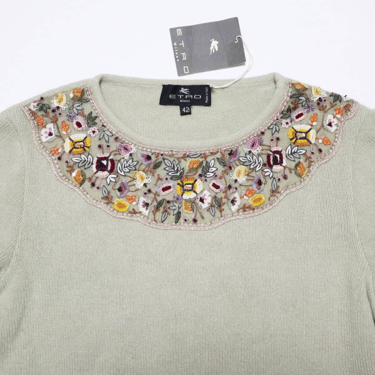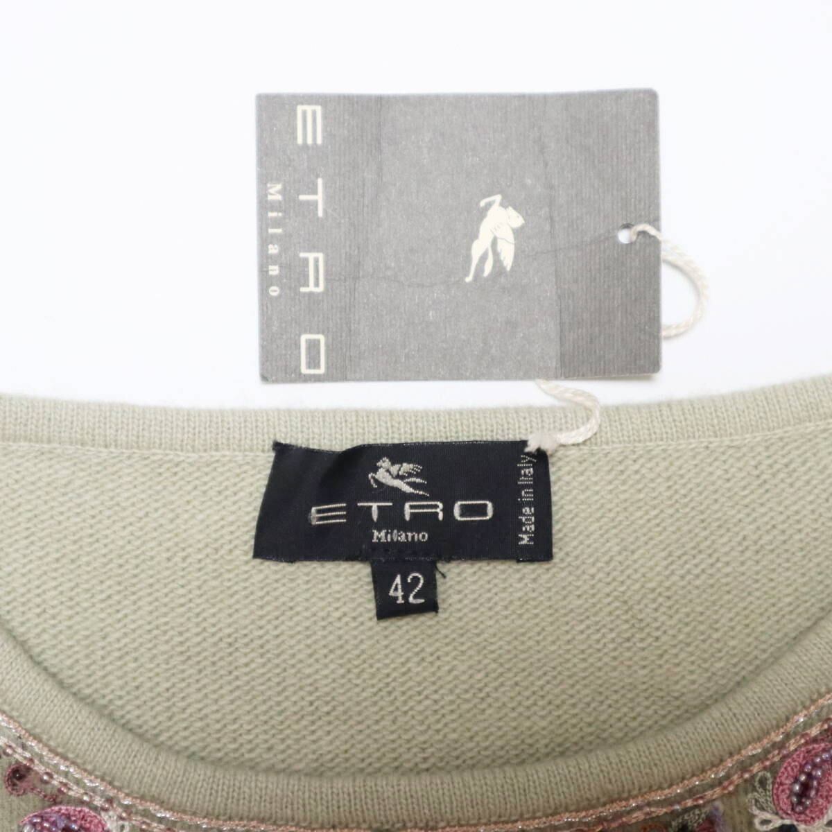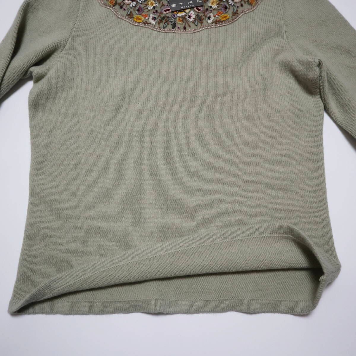 ETRO エトロ ビーズ/スパンコール/刺繍 ウール/アンゴラ 長袖 二ット セーター 42 ライトグリーン/マルチカラー T2511-k075