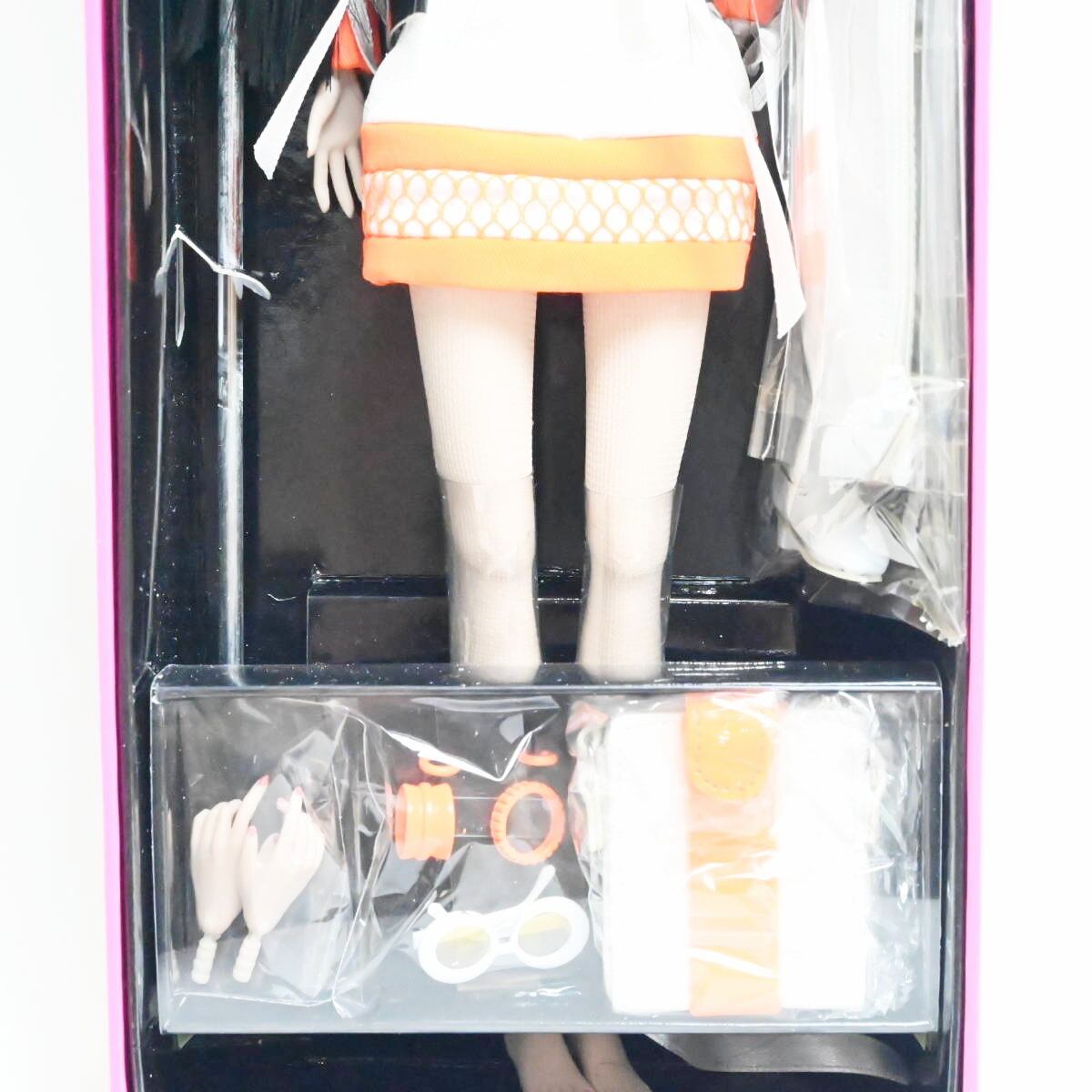 白とオレンジのミニドレスにクロップドジャケット、白のニーハイブーツやサングラス、オレンジのピアスとガンアクセサリーなど、60年代スパイ作品をイメージしたモッドスタイルのデザインがとても魅力的なお品です。