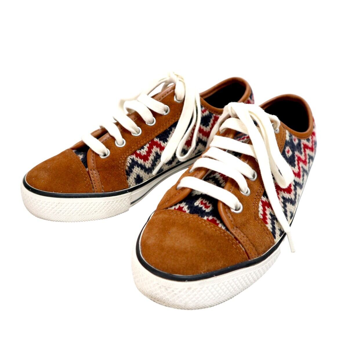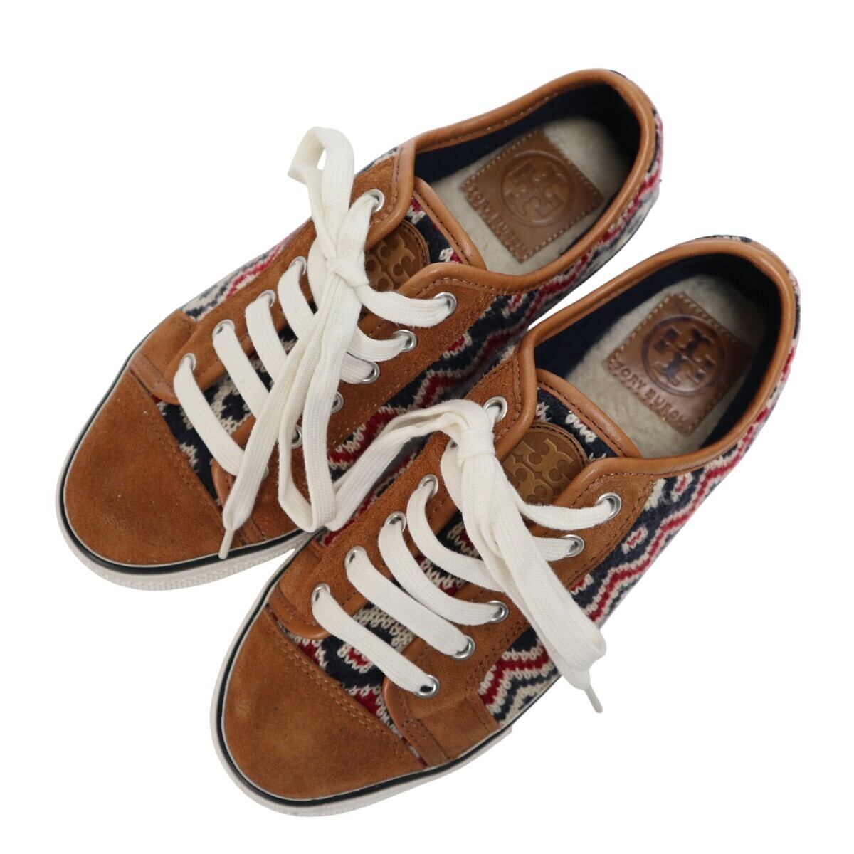 商品名:TORY BURCH トリーバーチ ジグザグ柄 ツイード/スエード スニーカー 8M チャ/マルチカラー