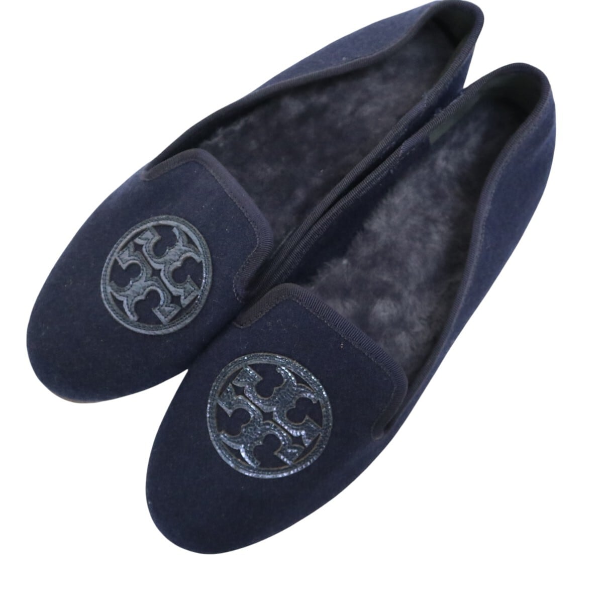 商品名:TORY BURCH トリーバーチ ロゴ フェルト スリッポン フラットシューズ 9M ネイビー