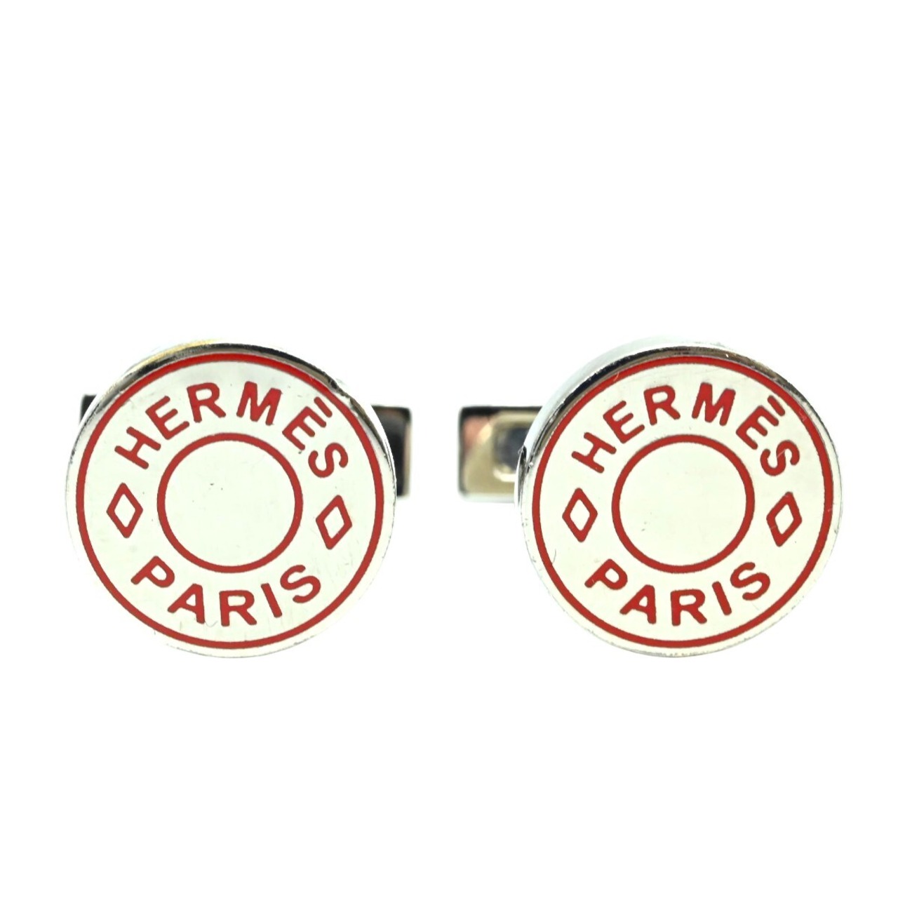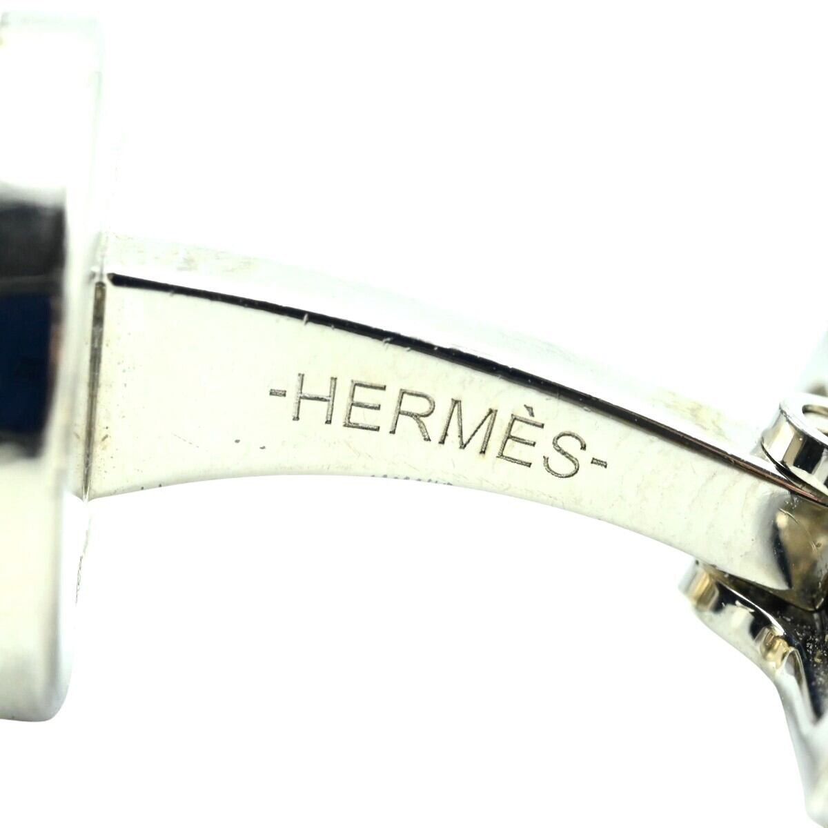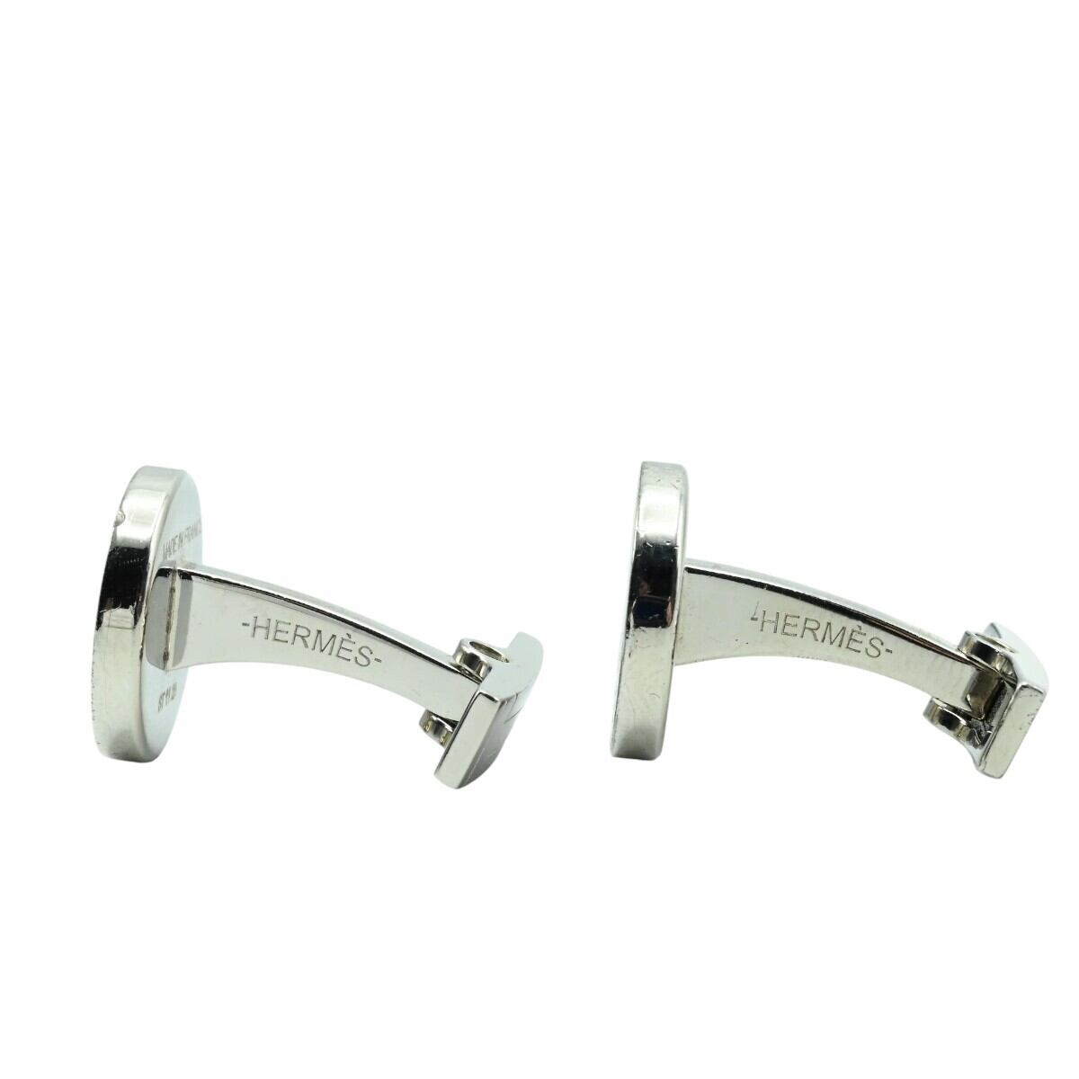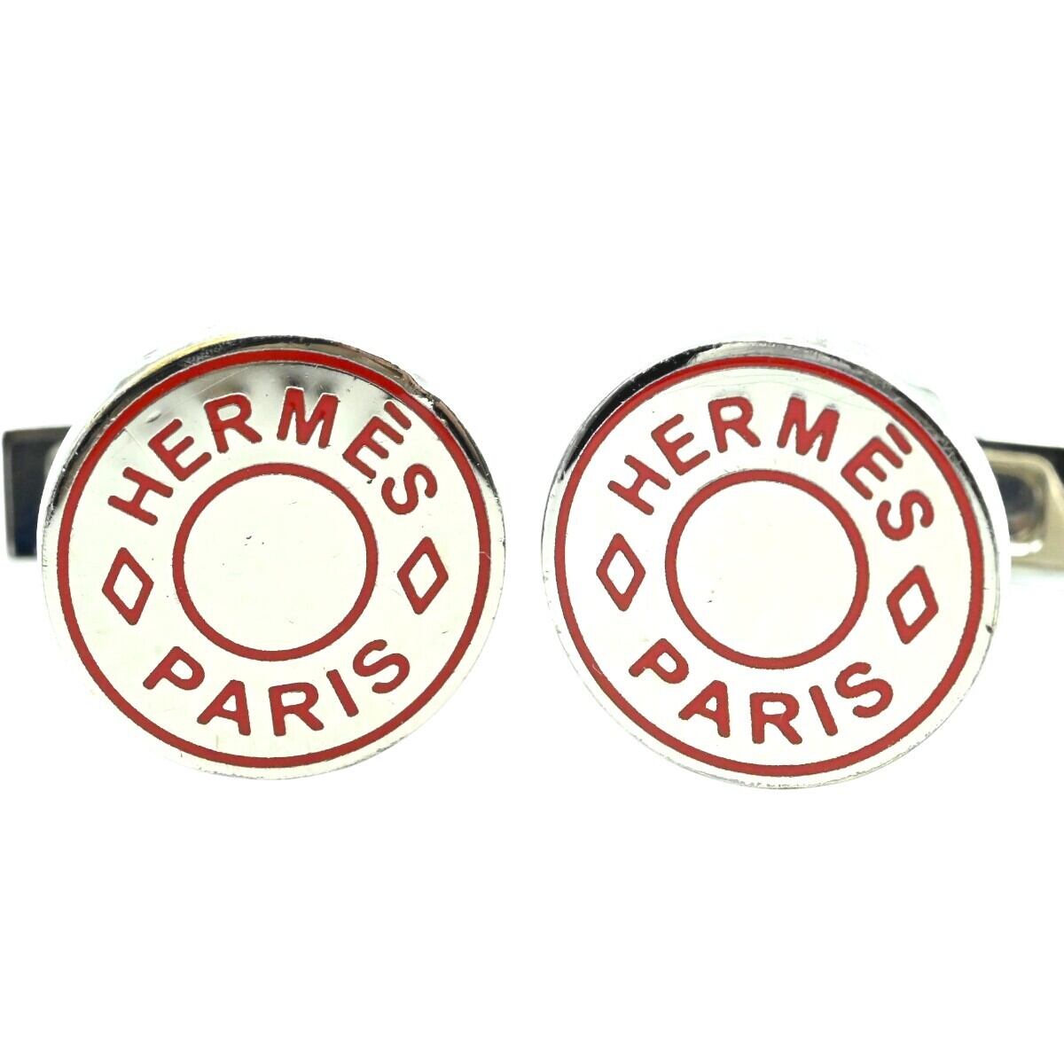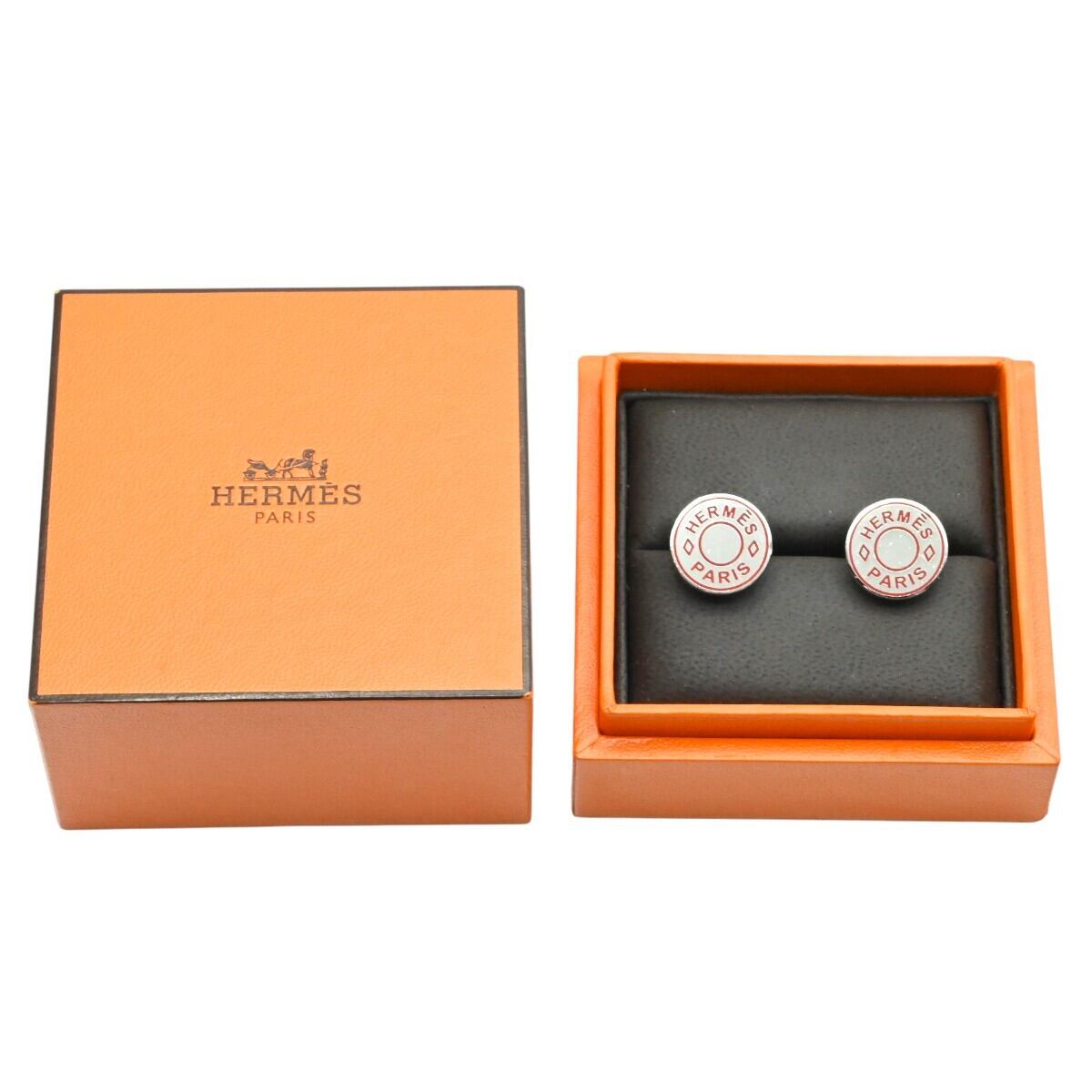 HERMES エルメス セリエ メタル カフスボタン カフリンクス シルバー/オレンジ K2512-k001