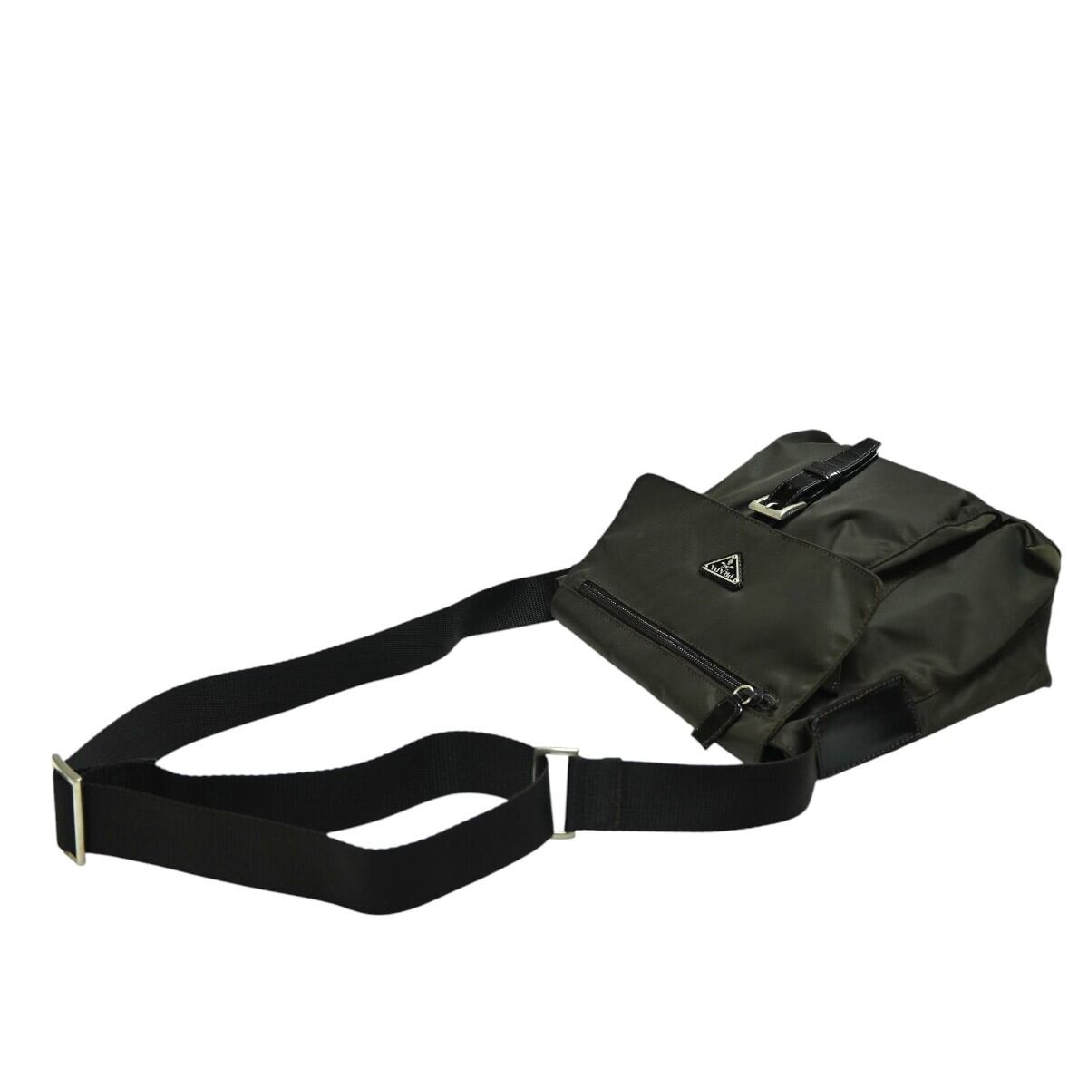 商品名:PRADA プラダ ロゴプレート ナイロン/レザー ショルダーバッグ ブラウン