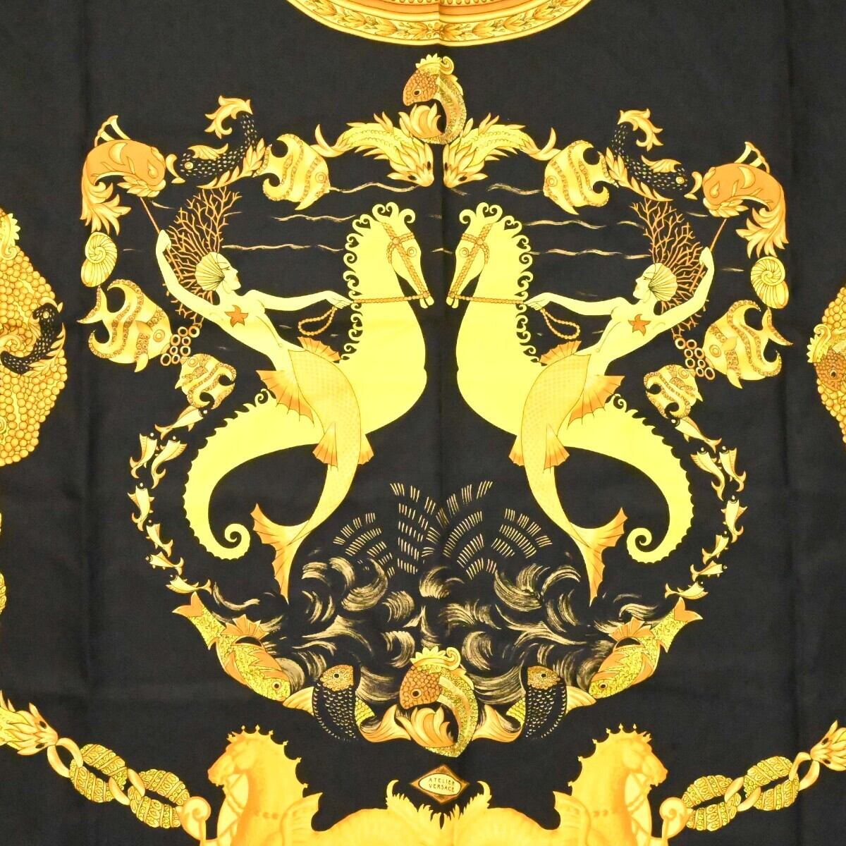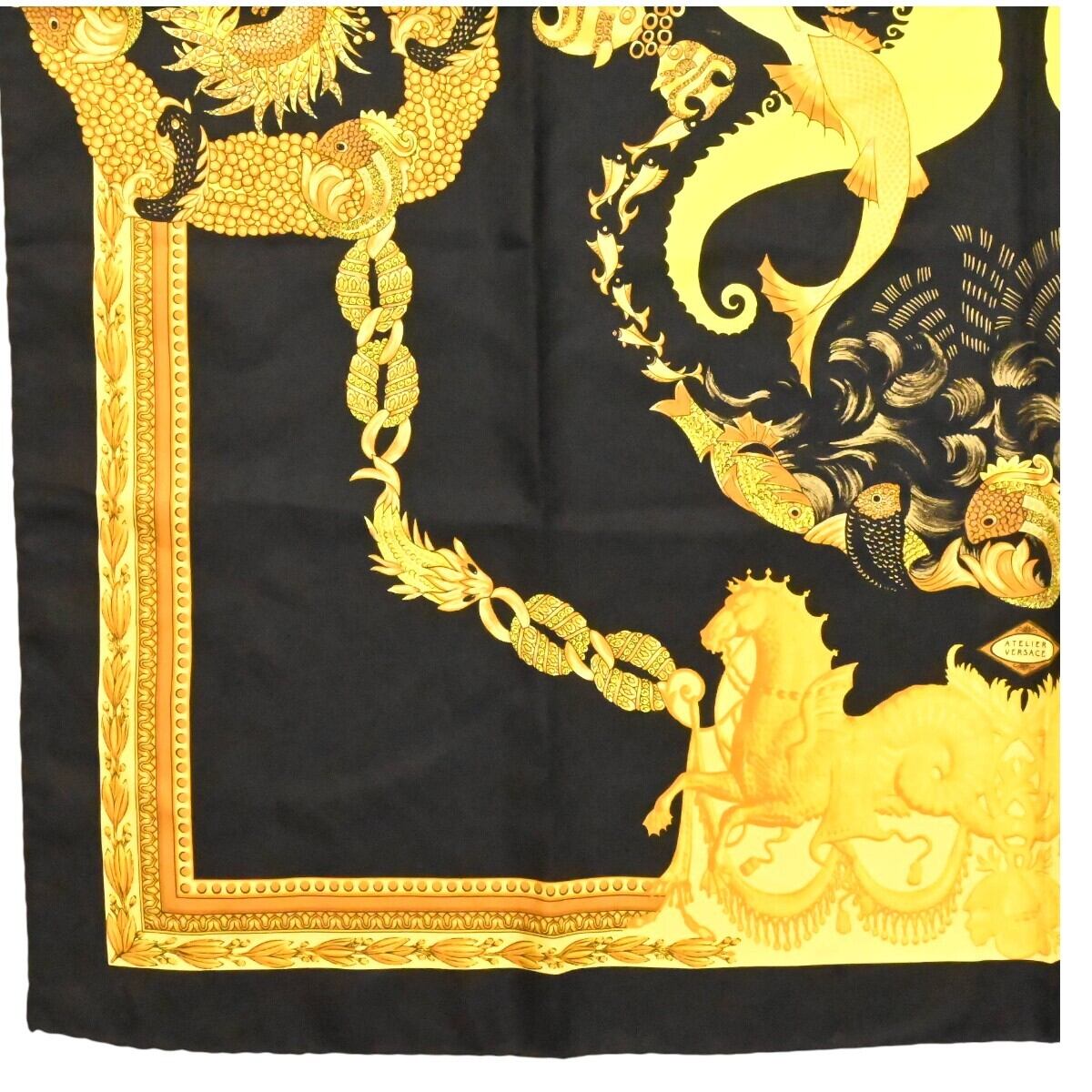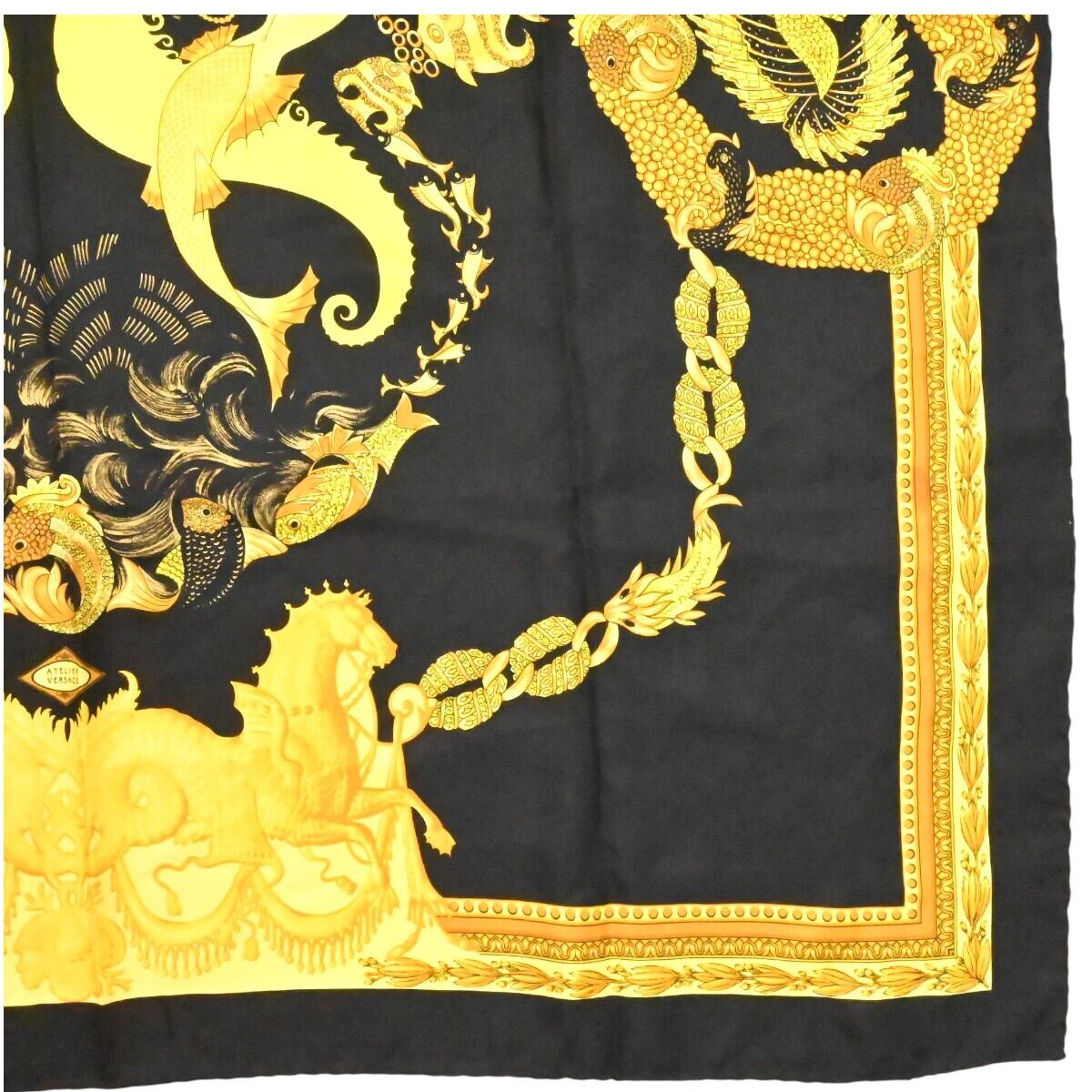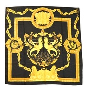 商品名:ATELIER VERSACE アトリエヴェルサーチ 総柄 シルク 大判スカーフブラック/ゴールド