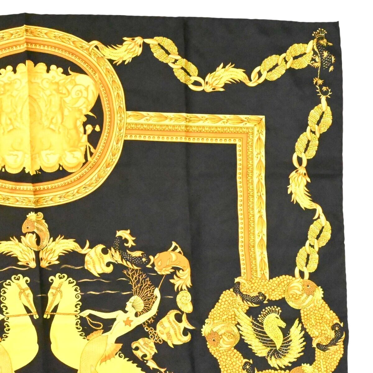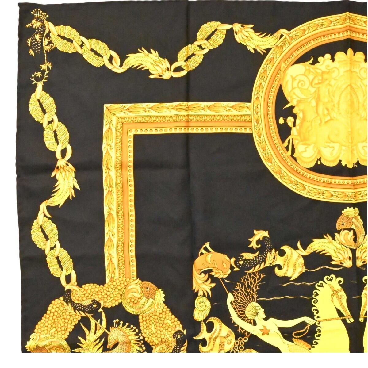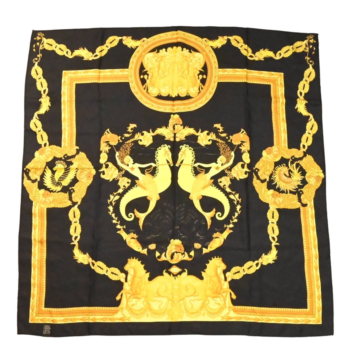 商品名:ATELIER VERSACE アトリエヴェルサーチ 総柄 シルク 大判スカーフブラック/ゴールド