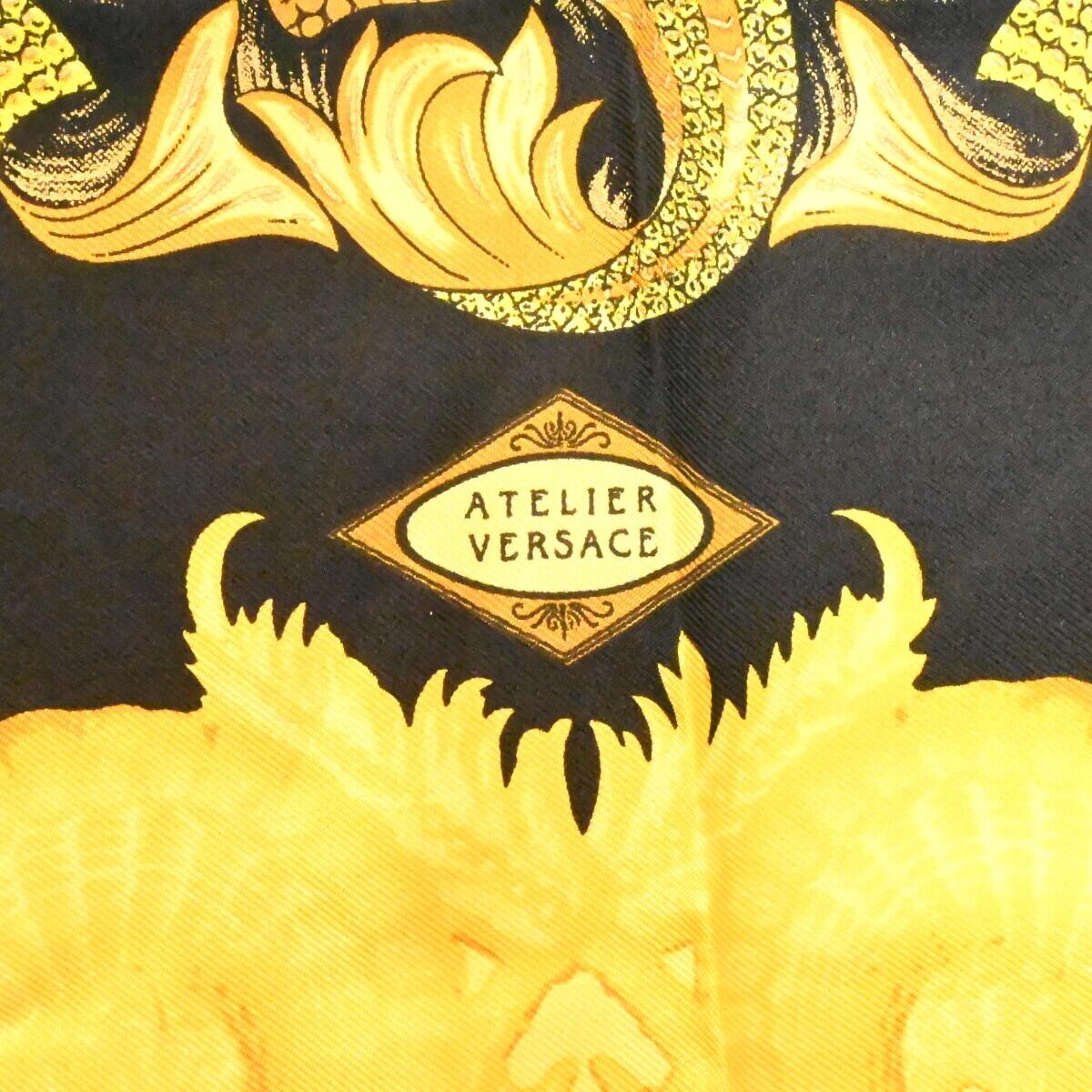 ATELIER VERSACE アトリエヴェルサーチ 総柄 シルク 大判スカーフブラック/ゴールド K2511-k097NP