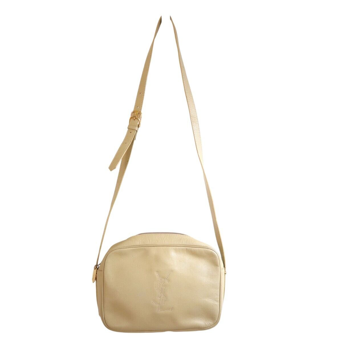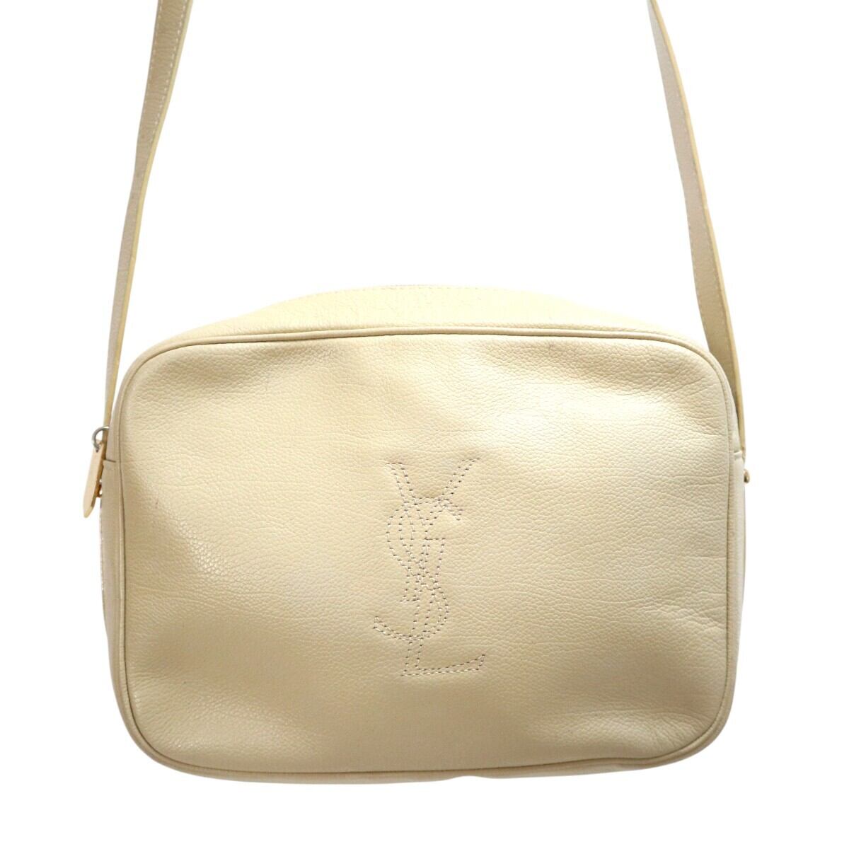 YVESSAINTLAURENT イヴサンローラン ヴィンテージ YSLロゴ レザーショルダーバッグ ベージュ M2512-k053