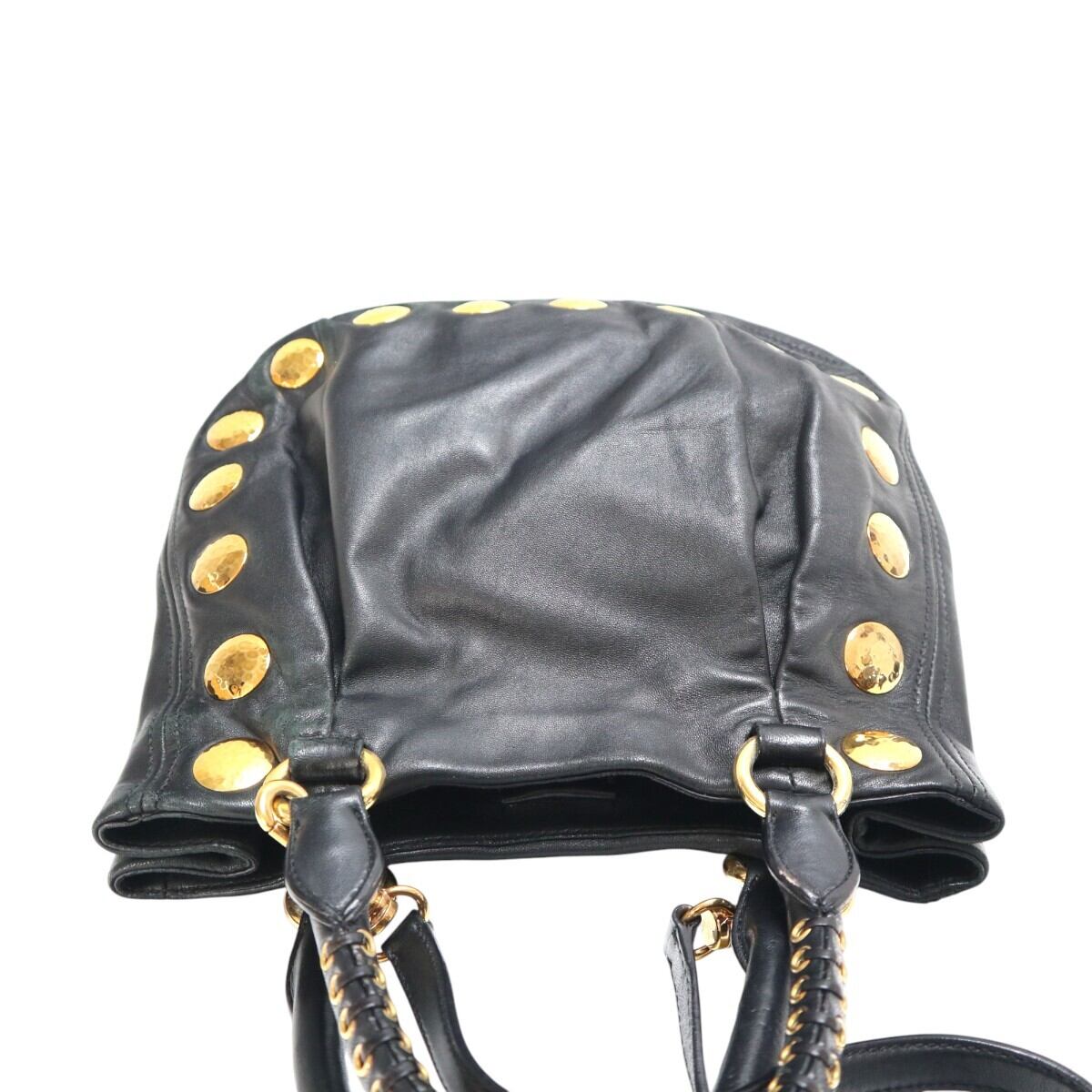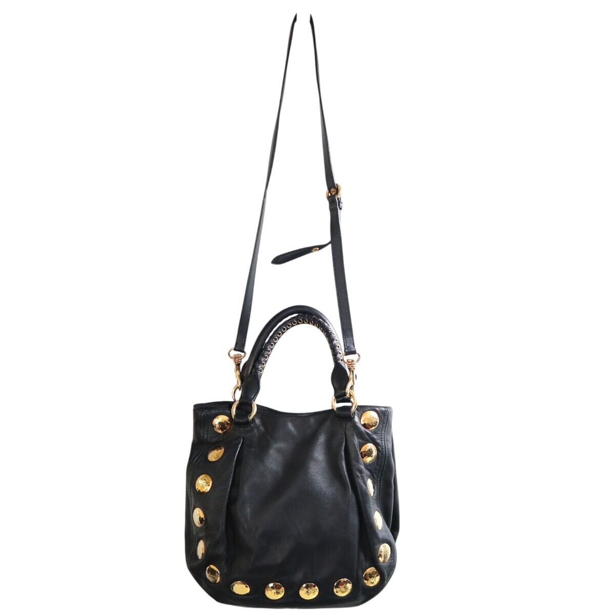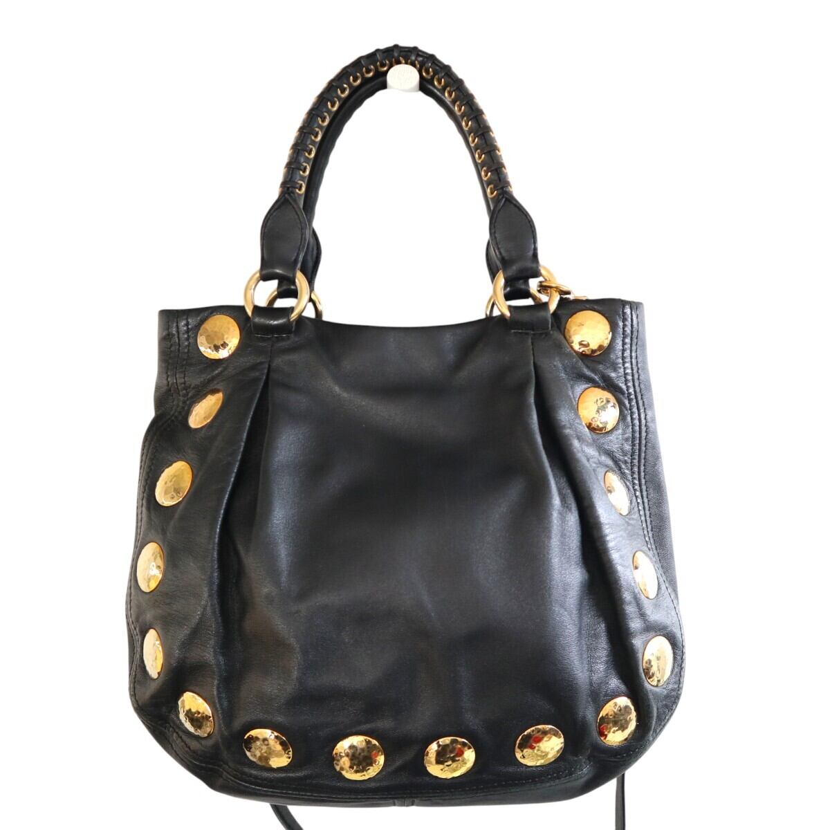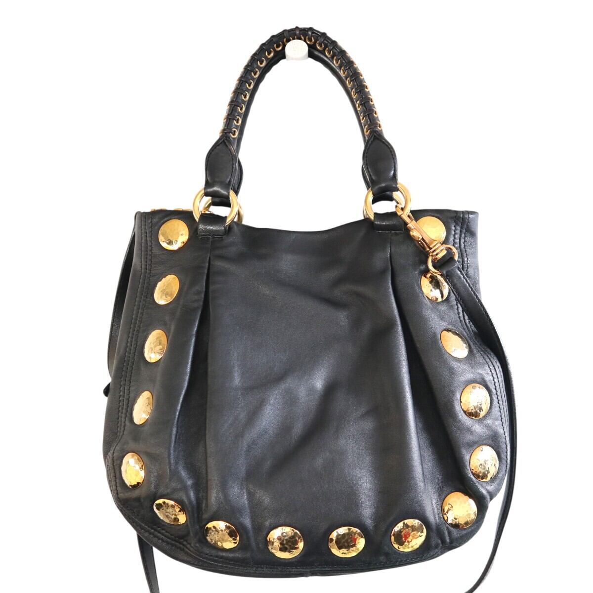 miumiu ミュウミュウ スタッズ レザー 2WAY ハンドバッグ ショルダーバッグ ブラック/ゴールド M2512-k072