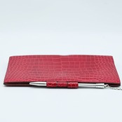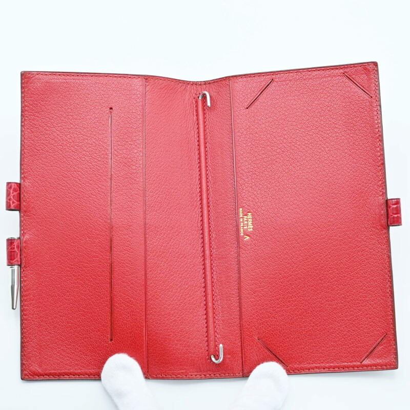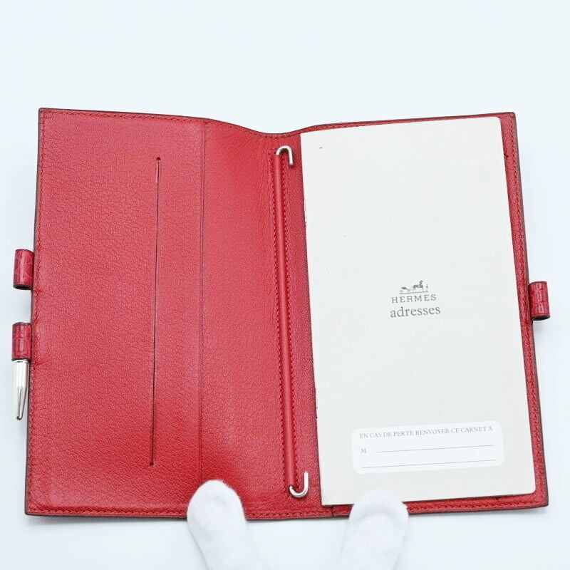 HERMES エルメス ポロサス クロコダイル アジェンダ 手帳カバー/SV925ボールペン レッド/シルバー 筆記確認済み M08-k033