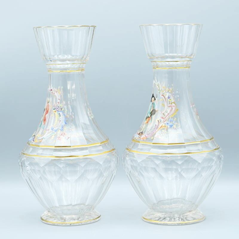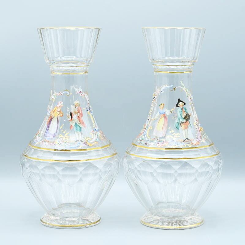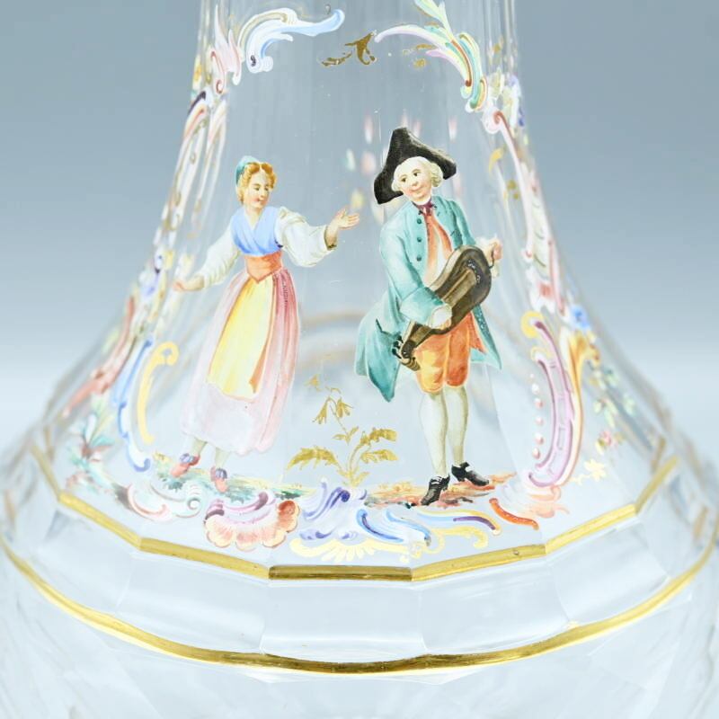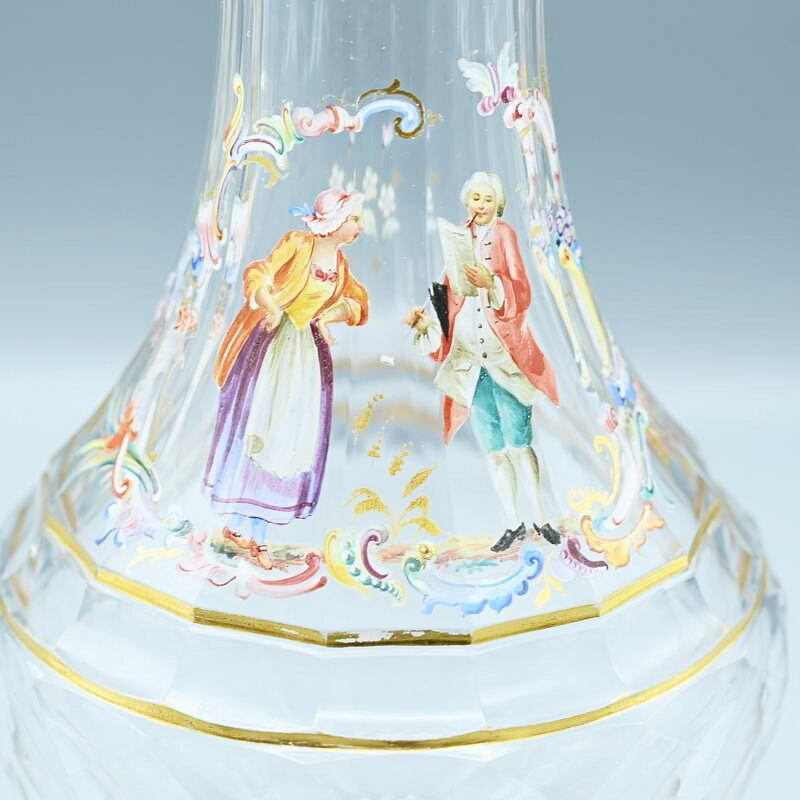 商品名:希少 LOBMEYR ロブマイヤー 中世恋人文カラフ 一対 エナメル彩 金彩 約24.5cm