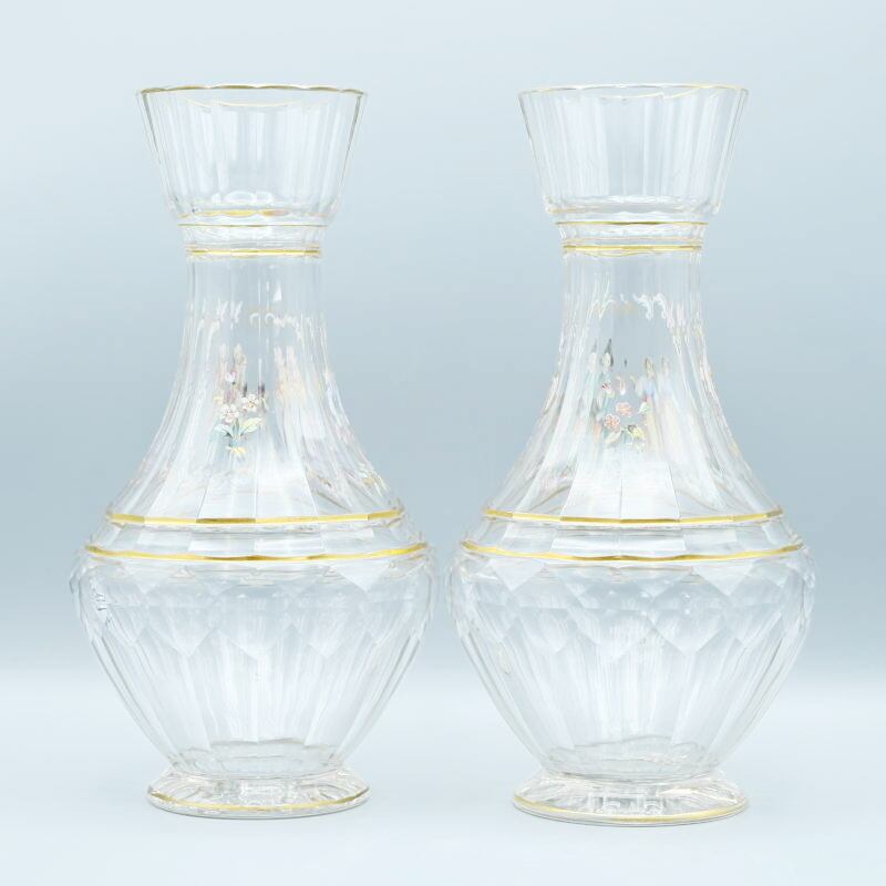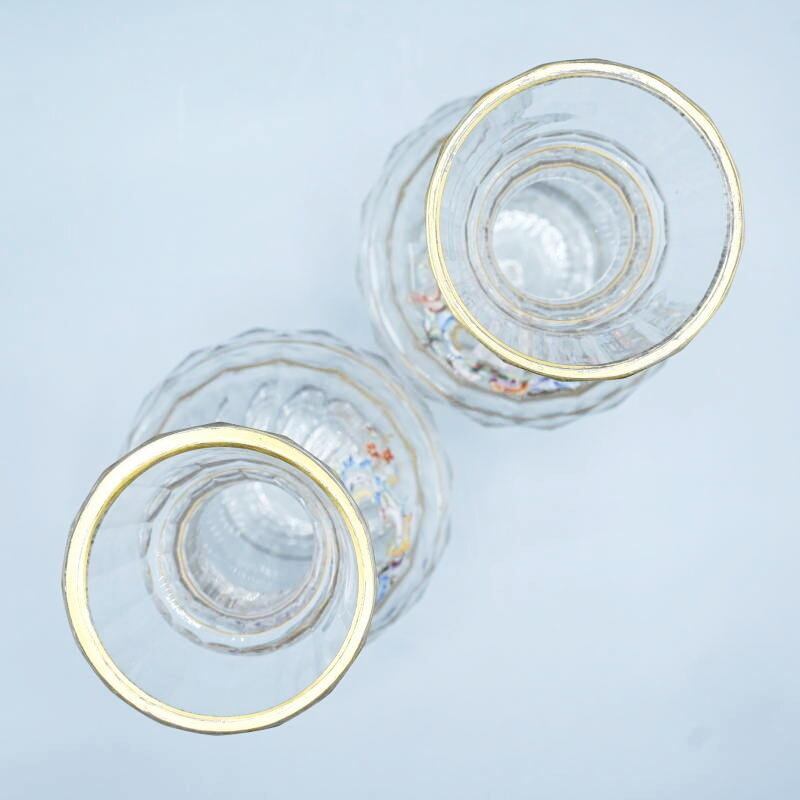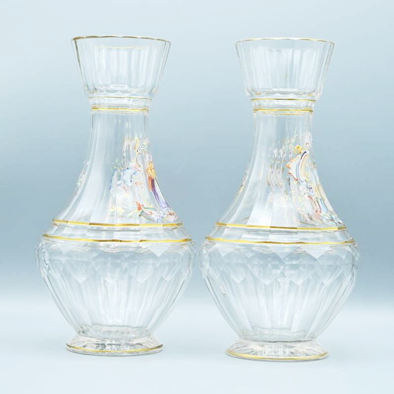 希少 LOBMEYR ロブマイヤー 中世恋人文カラフ 一対 エナメル彩 金彩 約24.5cm T09-t064