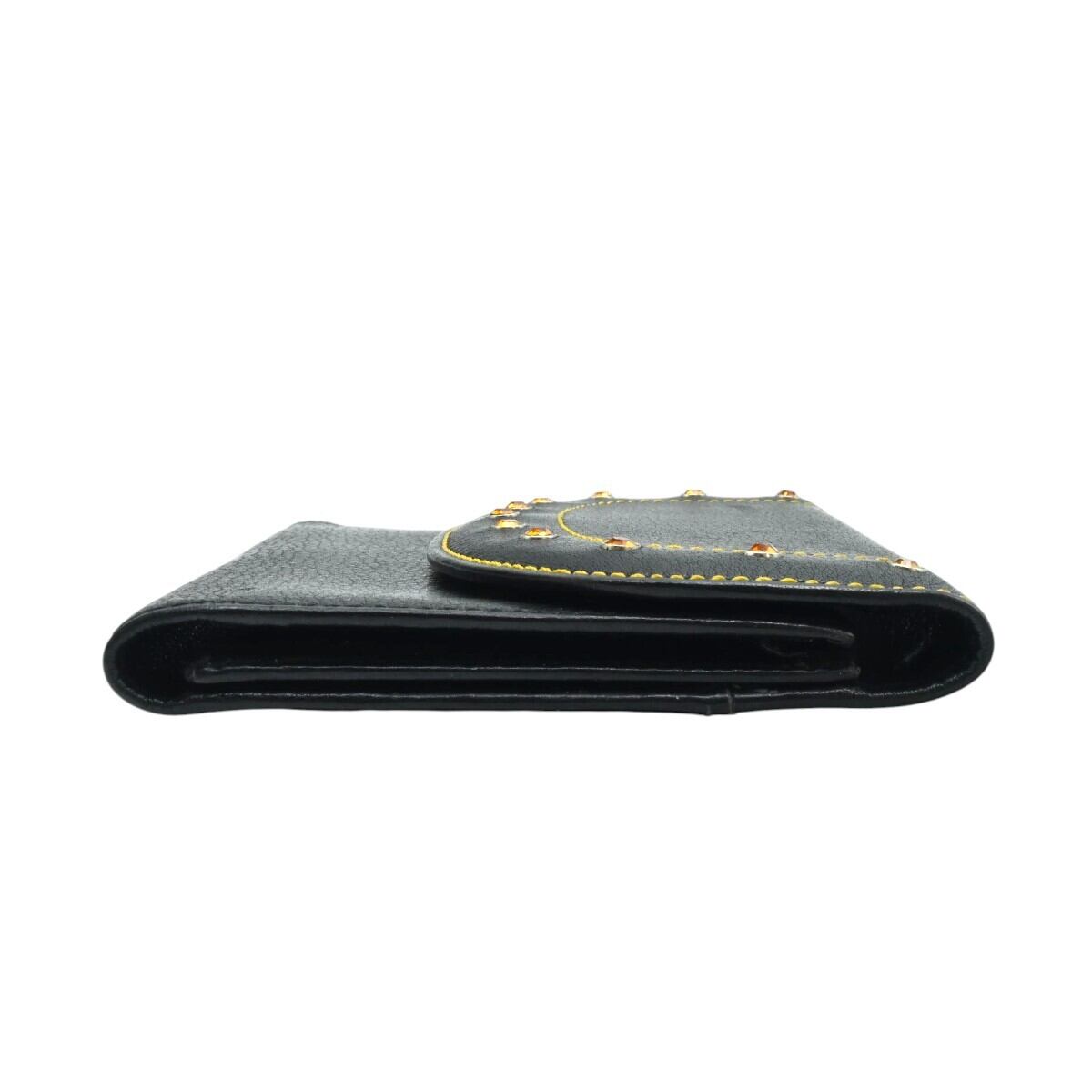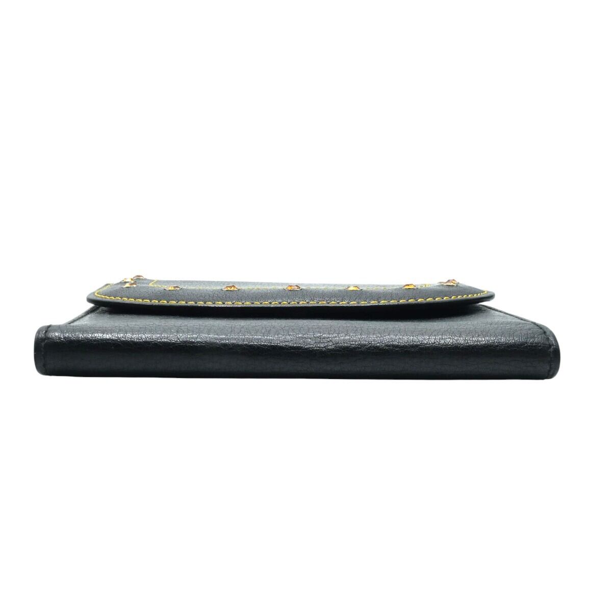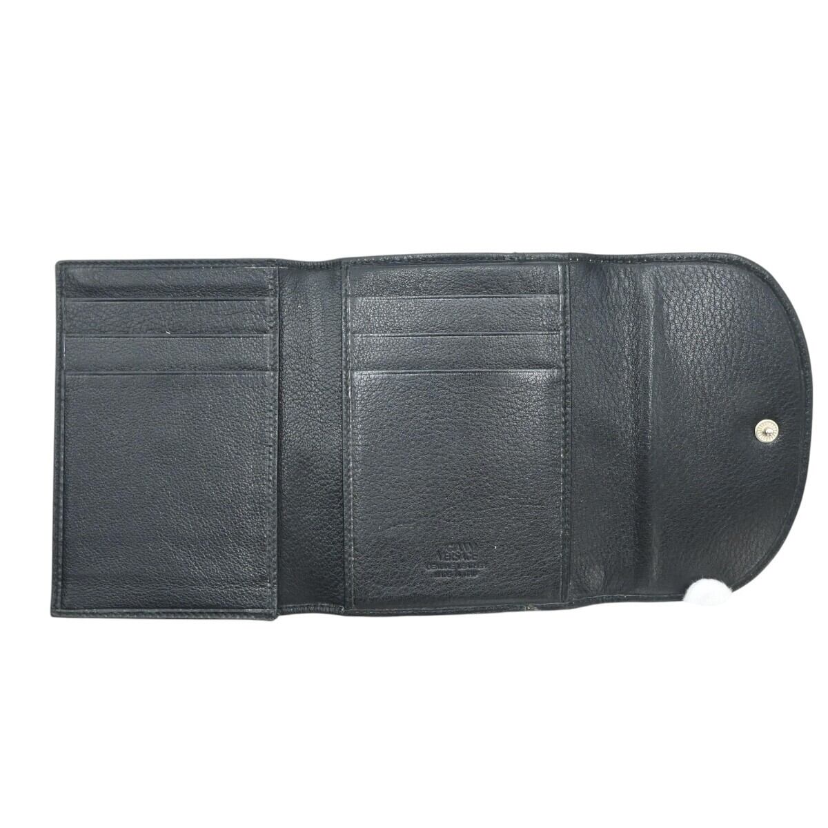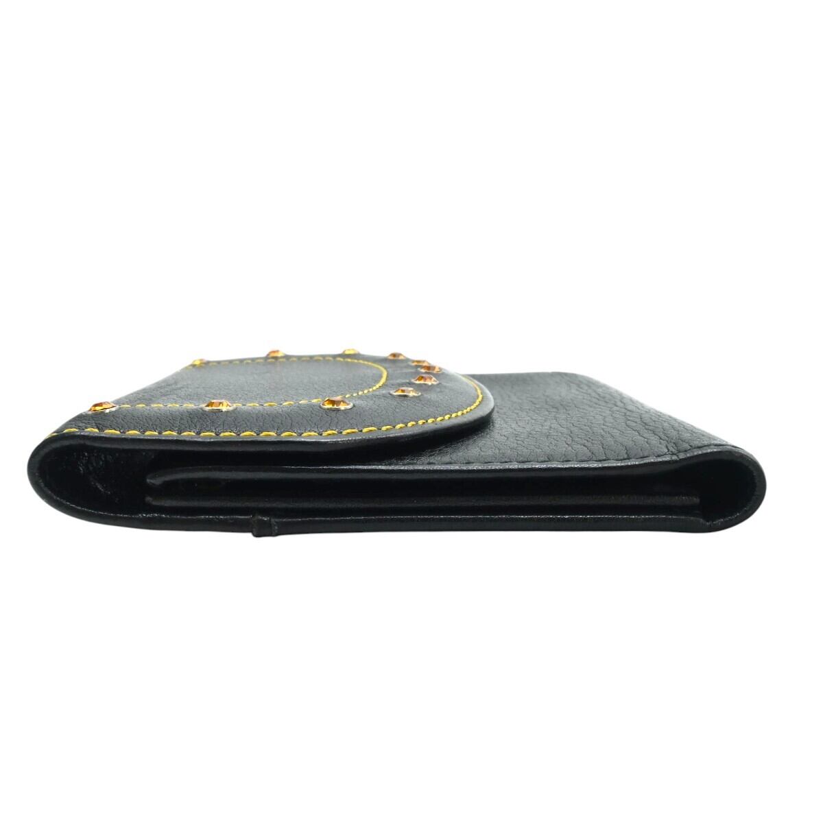 GIANNI VERSACE ラインストーンスタッズ レザー カードホルダー付き 三つ折り カードケース 名刺入れ ブラック K2512-k068NP