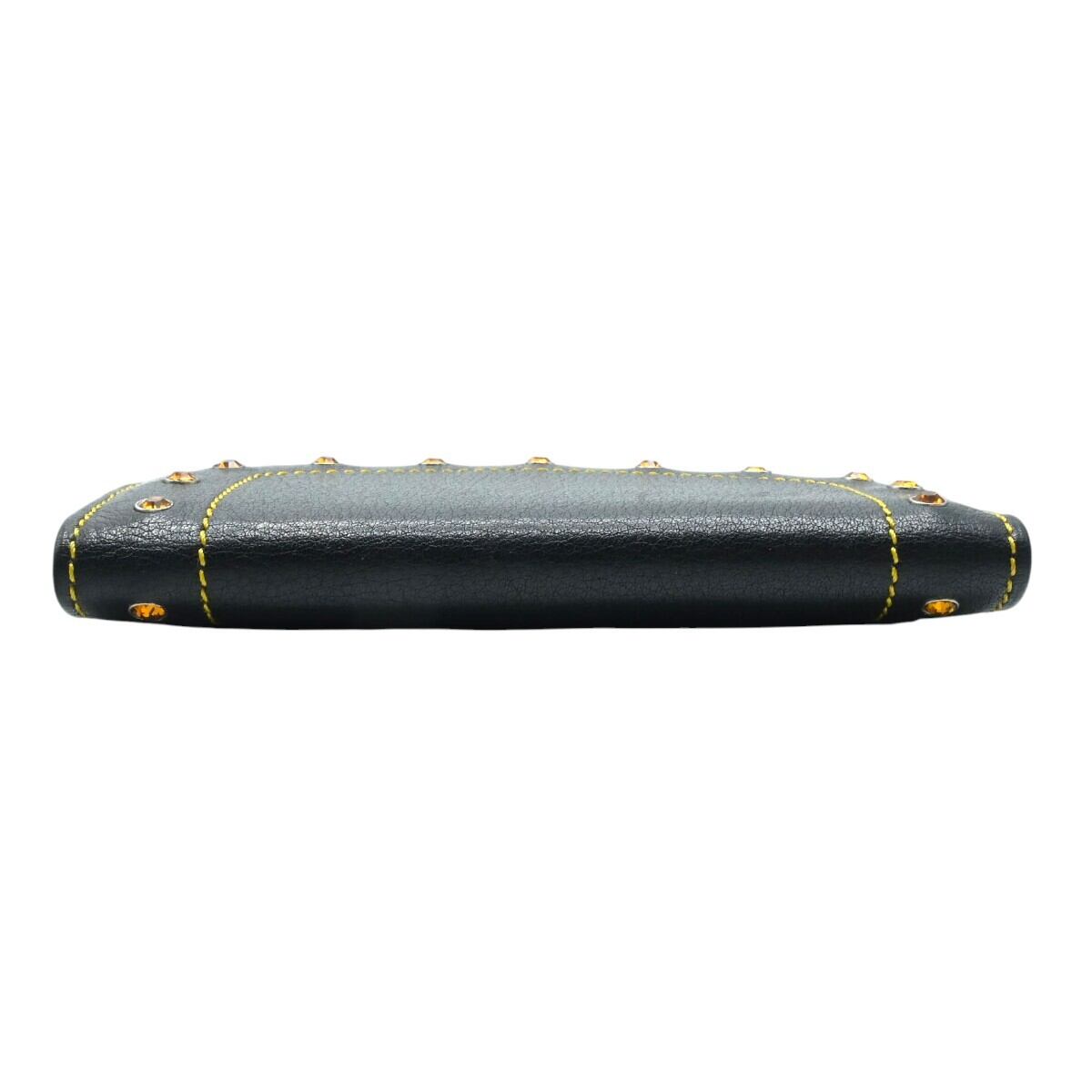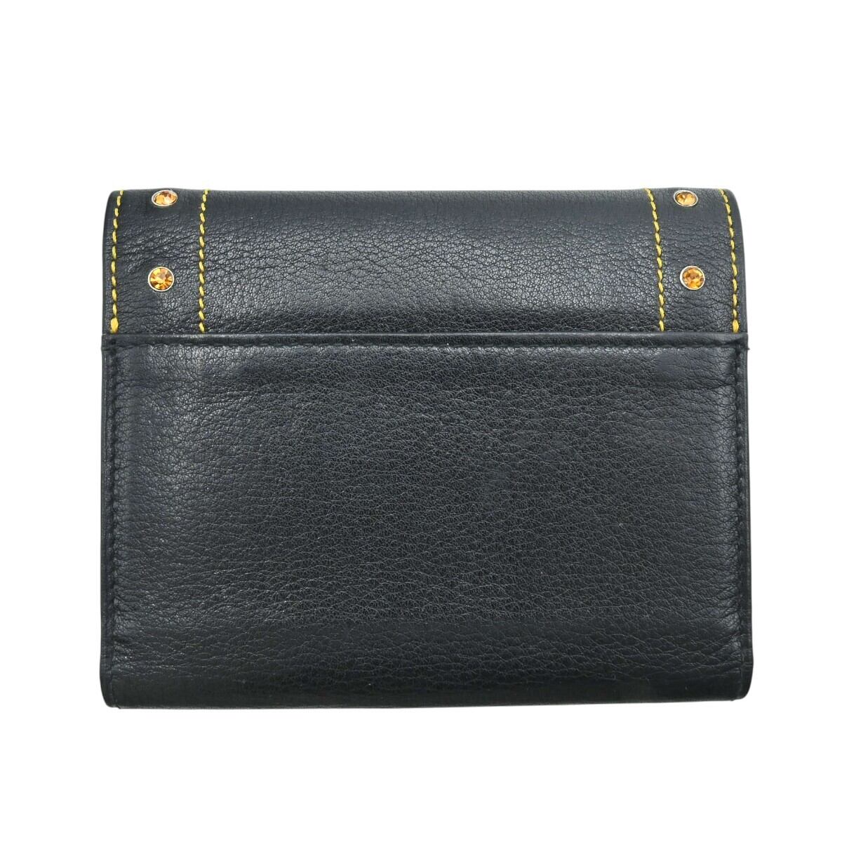 商品名:GIANNI VERSACE ラインストーンスタッズ レザー カードホルダー付き 三つ折り カードケース 名刺入れ ブラック