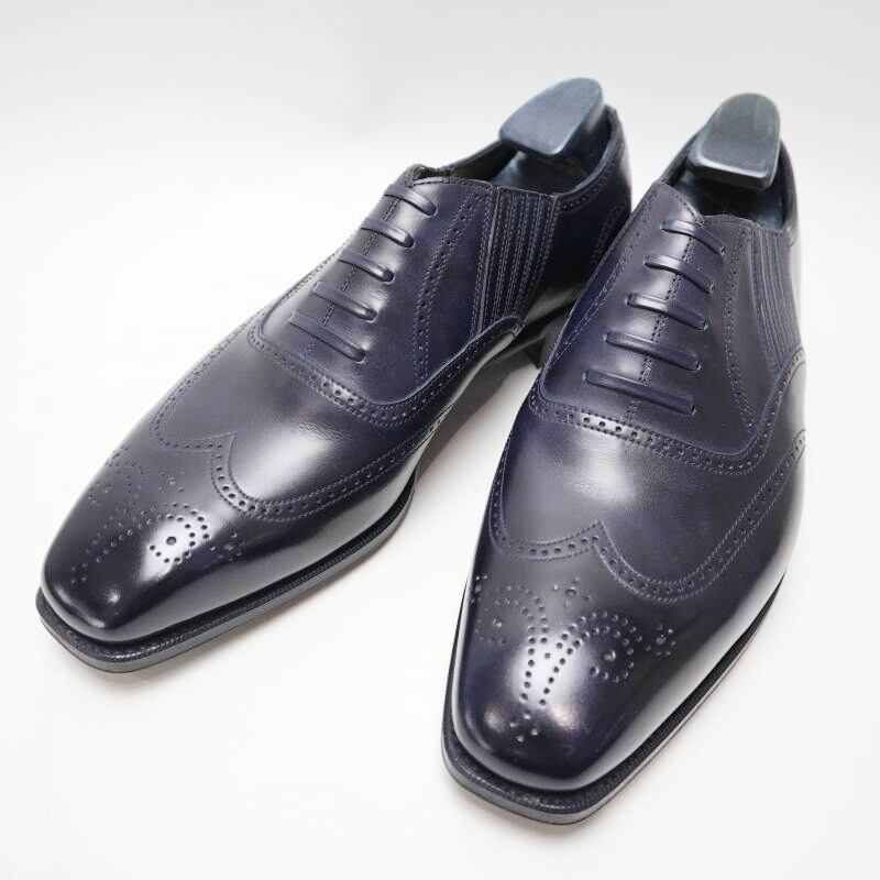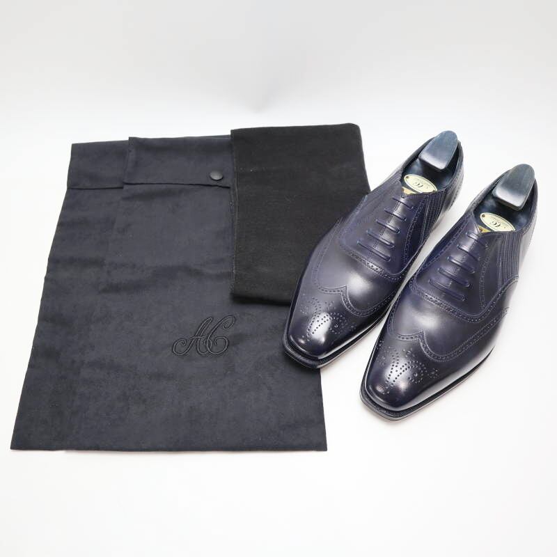 AnthonyCleverley アンソニークレバリー ウイングチップ レザービジネスシューズ 革靴 6 1/2E(24.5cm相当) ネイビー M06-k128