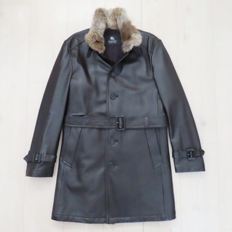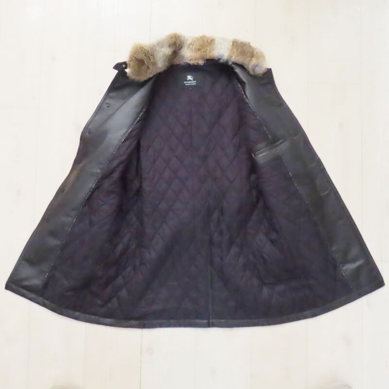 BURBERRY BLACK LABEL バーバリーブラックレーベル ラビットファー ラムレザ―トレンチコート L ダークブラウン M01-k049