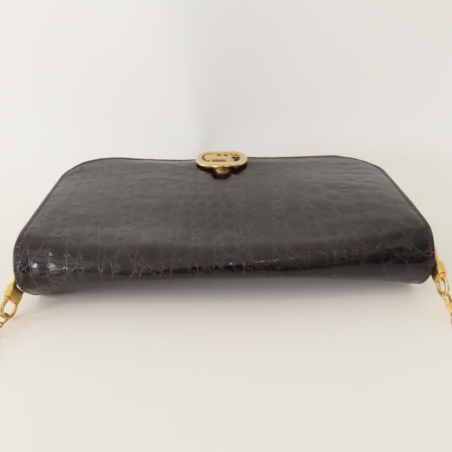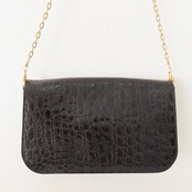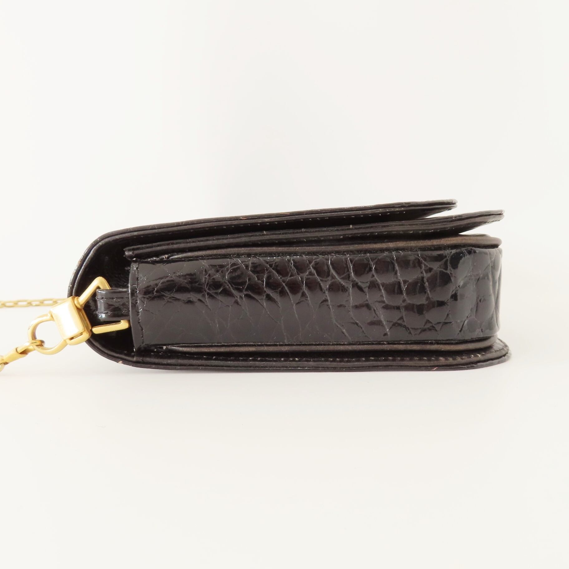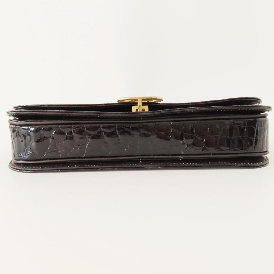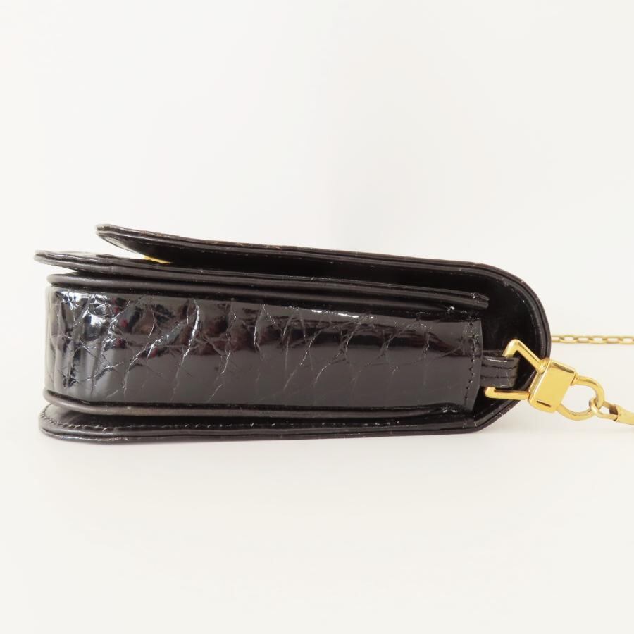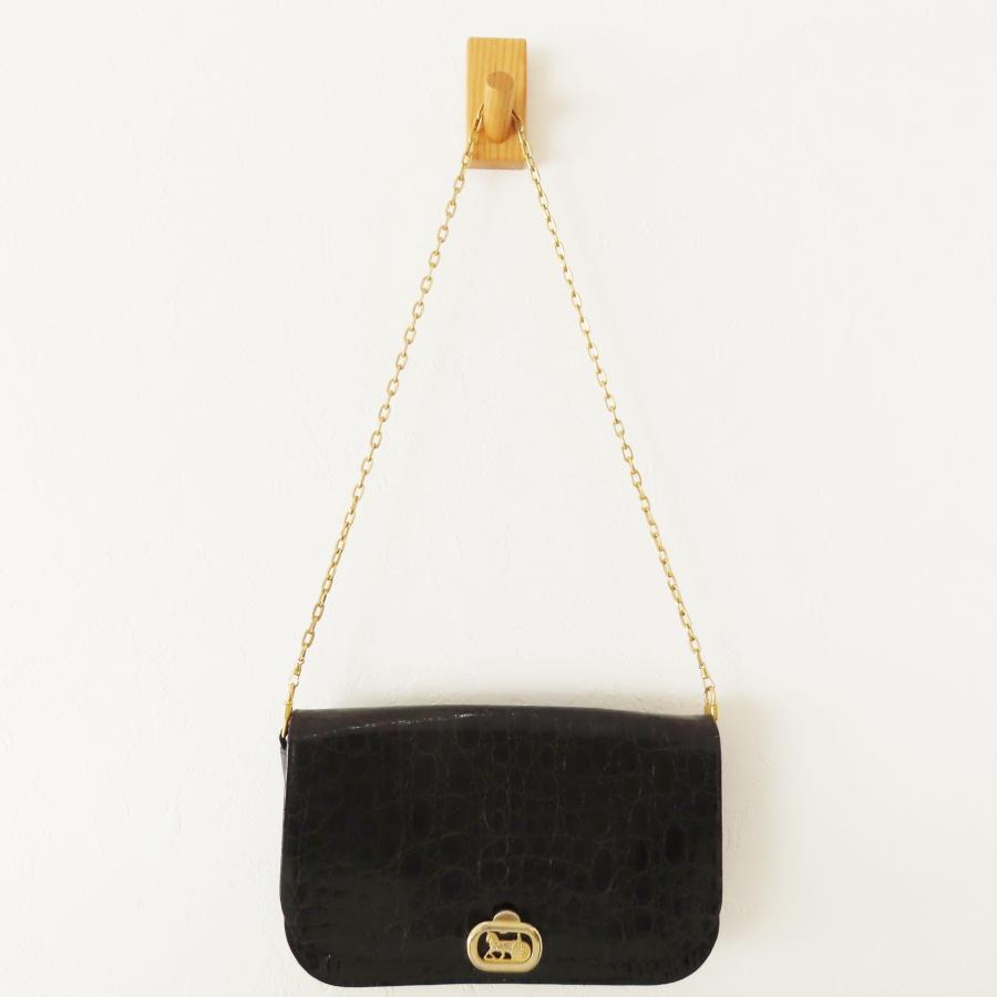 CELINE セリーヌ ヴィンテージ 馬車金具 フラップ クロコダイル チェーンショルダーバッグ ブラック/ゴールド M10