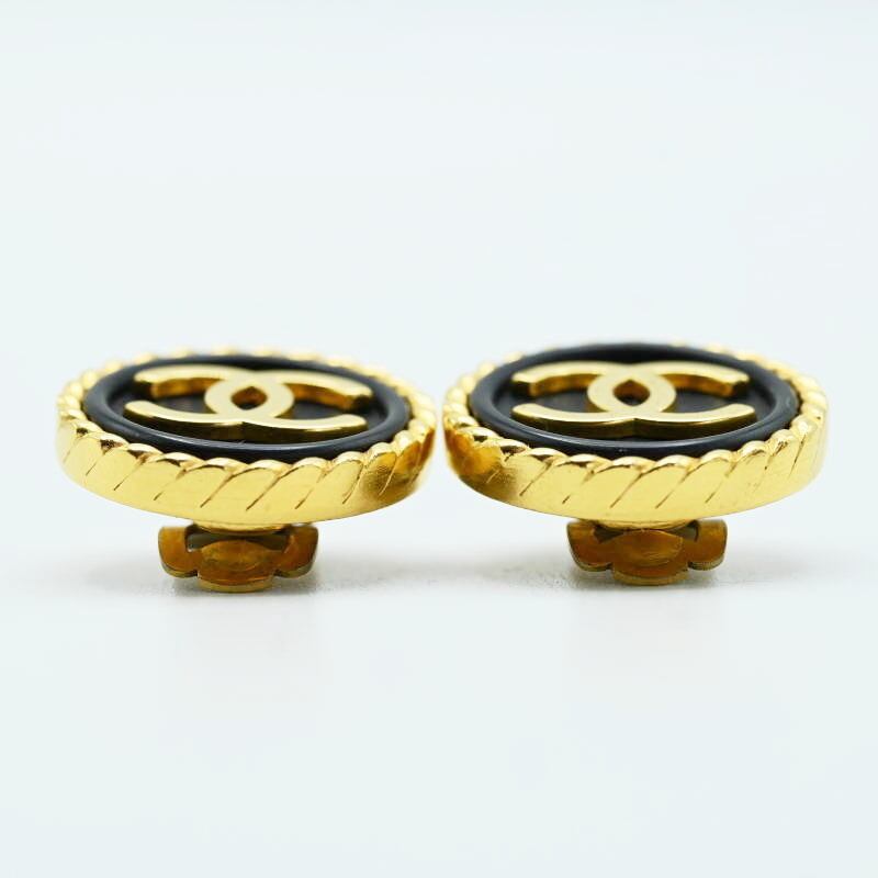 CHANEL シャネル ココマーク GP/プラスチック イヤリング 97P ゴールド/ブラック M07-k160