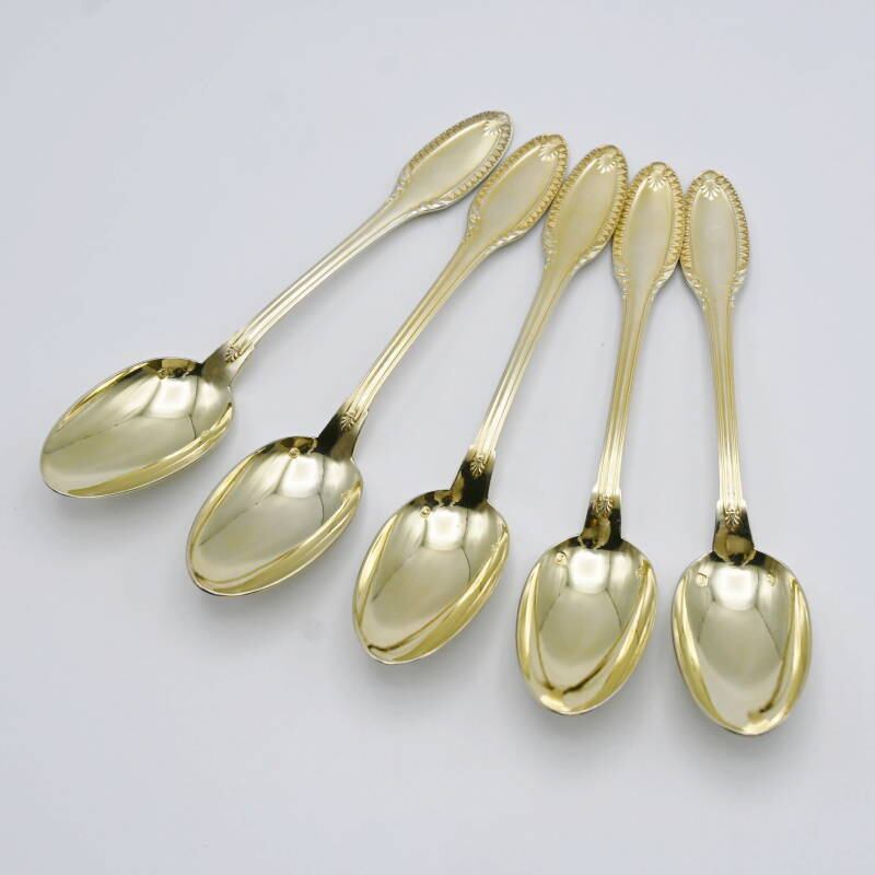 Emile Puiforcat エミールピュイフォルカ 純銀 ティースプーン コーヒースプーン カトラリー5点セット ゴールド S03-k004
