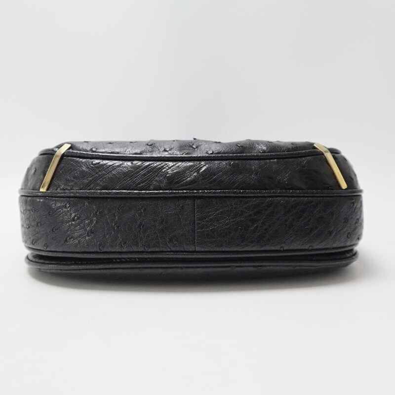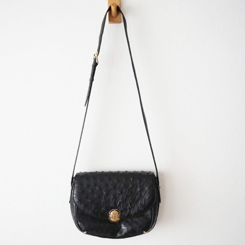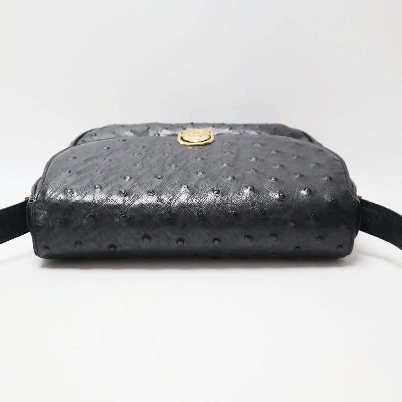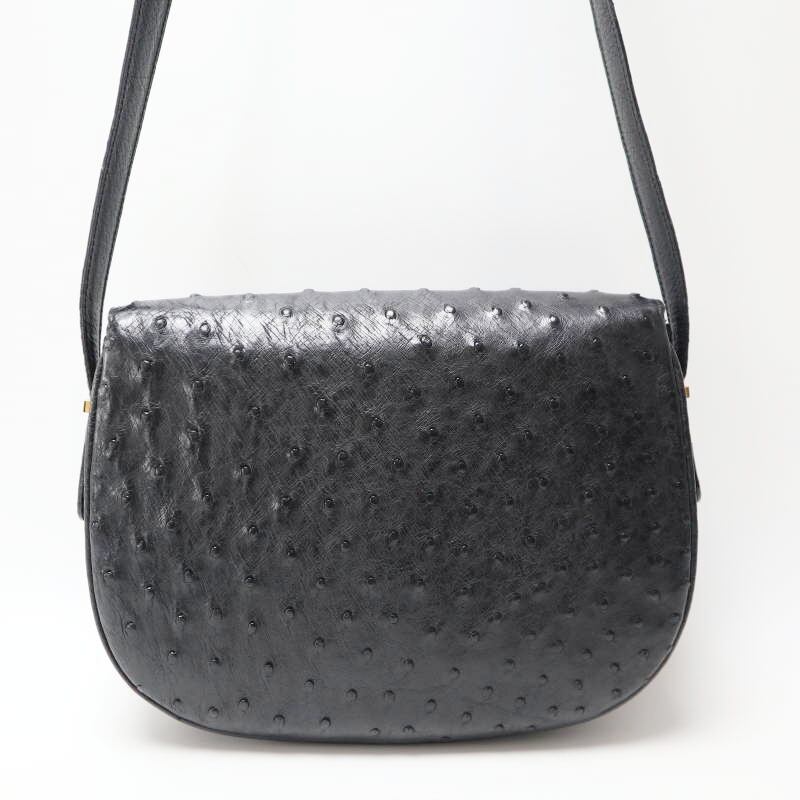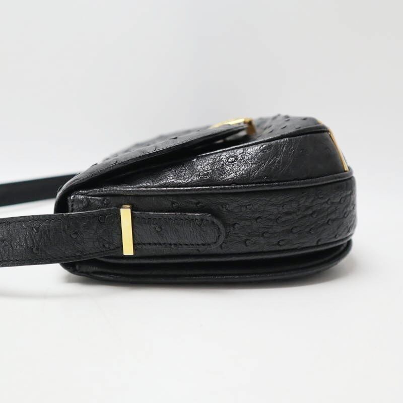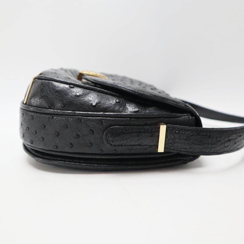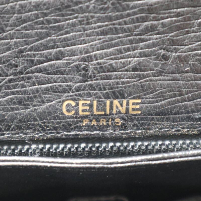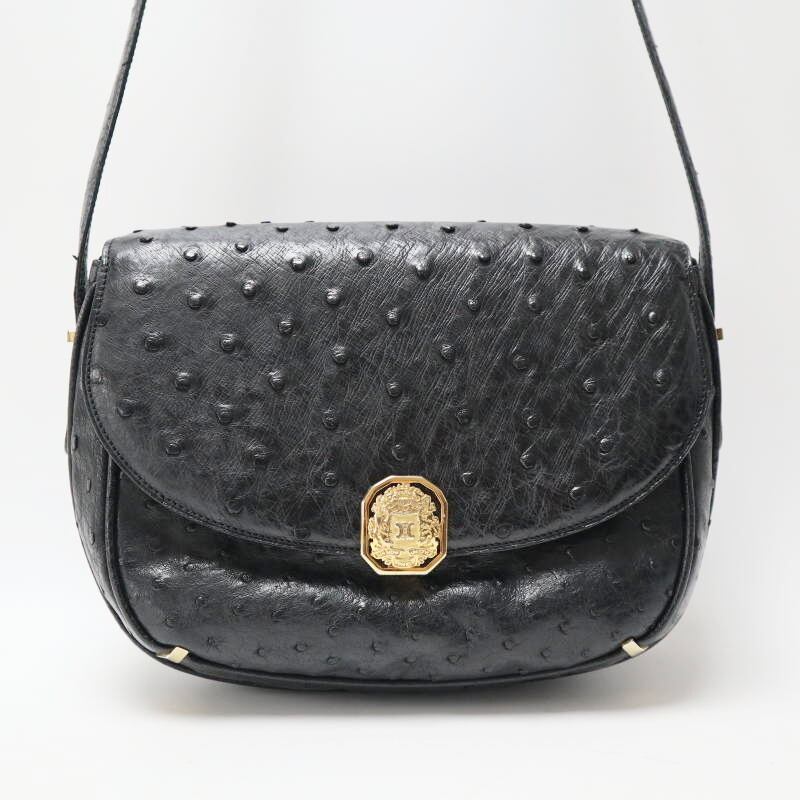 CELINE セリーヌ ヴィンテージ オーストリッチ フラップ ショルダーバッグ ブラック M07-k119