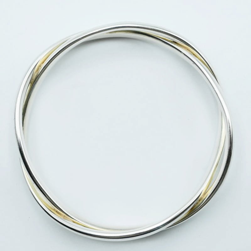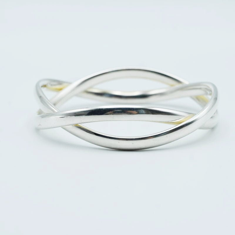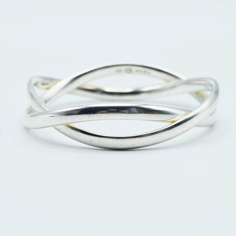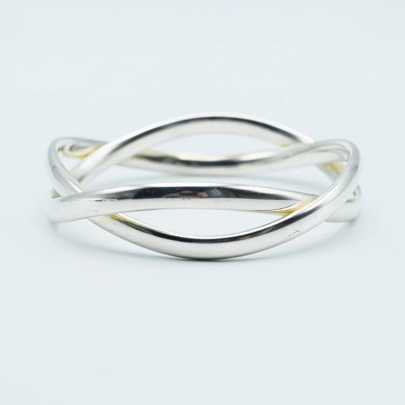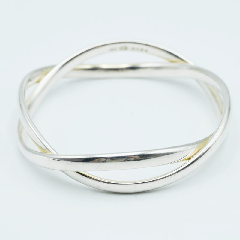 美品 GEORGE JENSEN ジョージジェンセン 2連デザイン SV925 バングル ブレスレレット シルバー 66.2g M01-k062