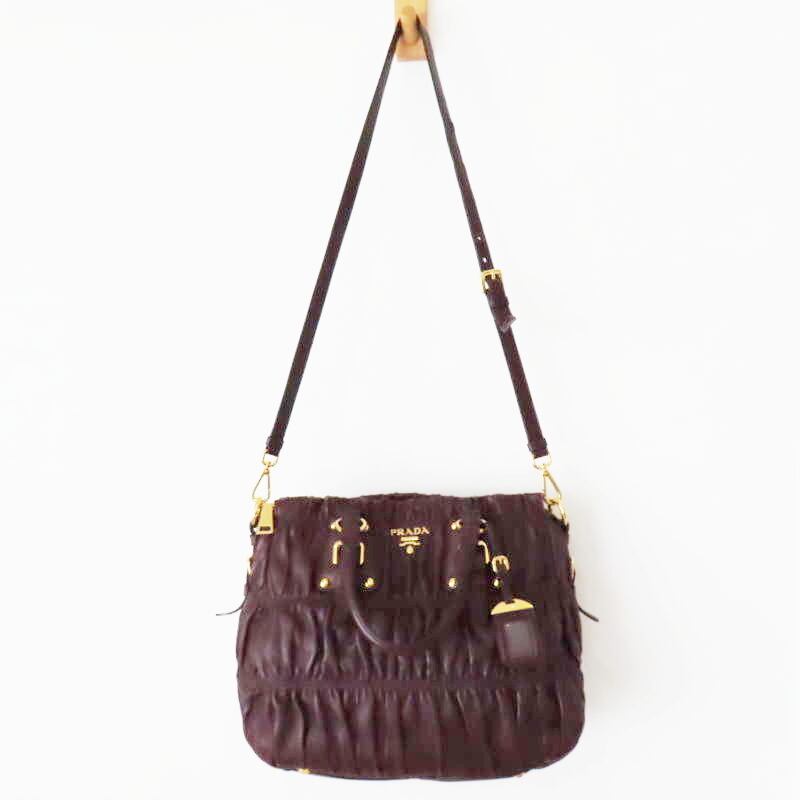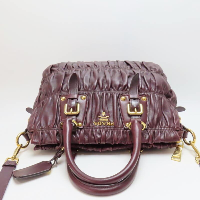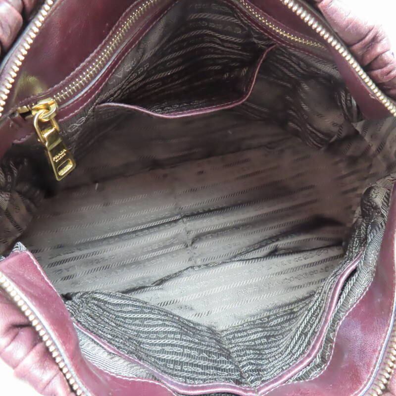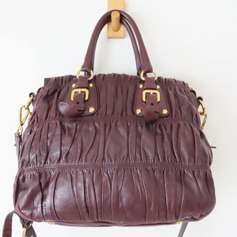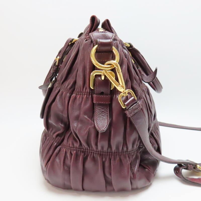 PRADA プラダ ギャザーレザ― 2WAYハンドバッグ ショルダーバッグ ダークブラウン M02-k019