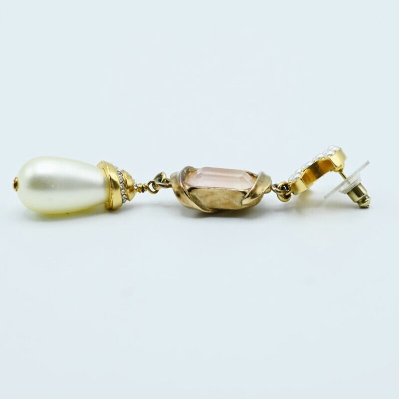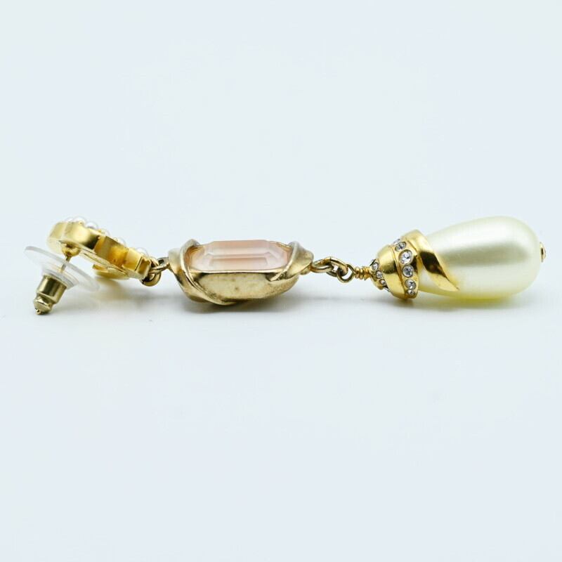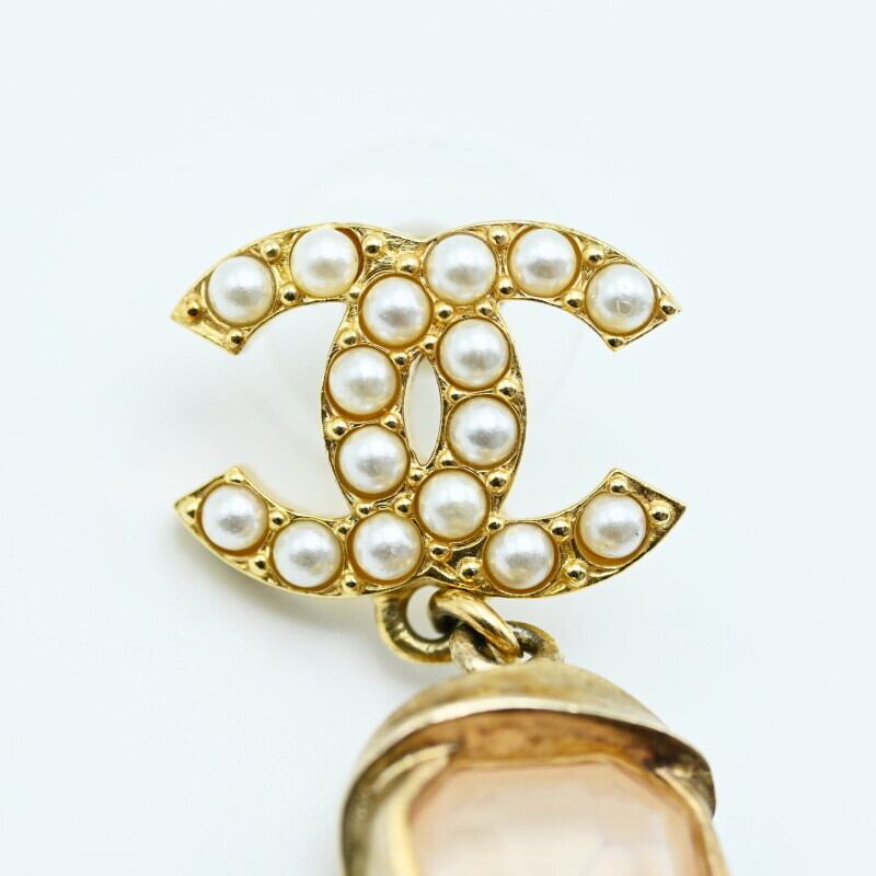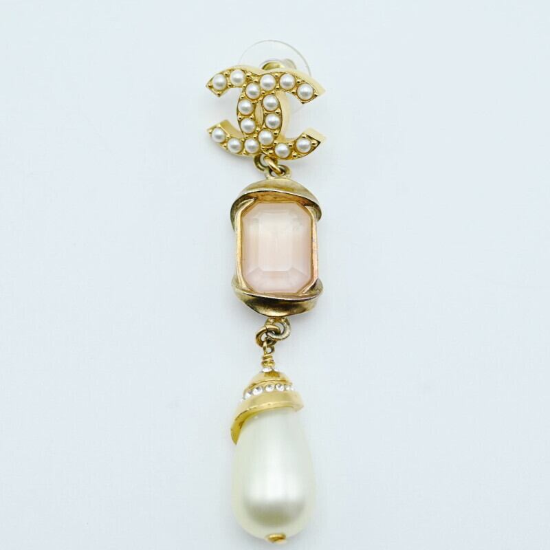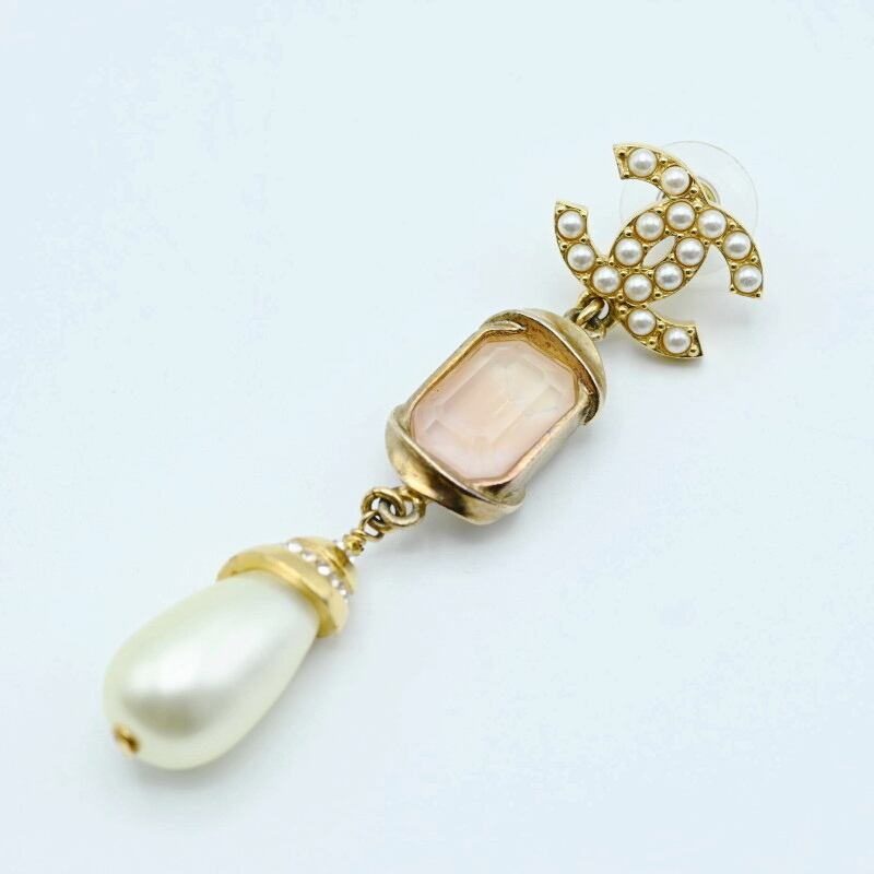 CHANEL シャネル ココマーク フェイクパール/ストーン/ラインストーン GP ピアス ゴールド/ホワイト C22A 片耳 K07-k118