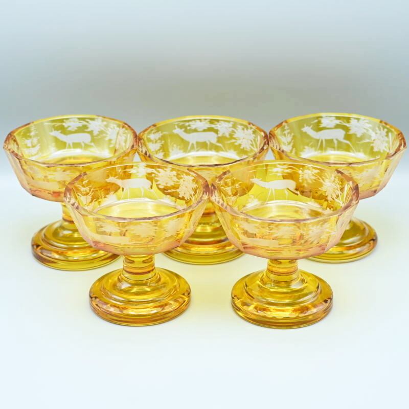 BOHEMIA ボヘミア 鹿文アイスクリームカップ 5点セット M07-t005