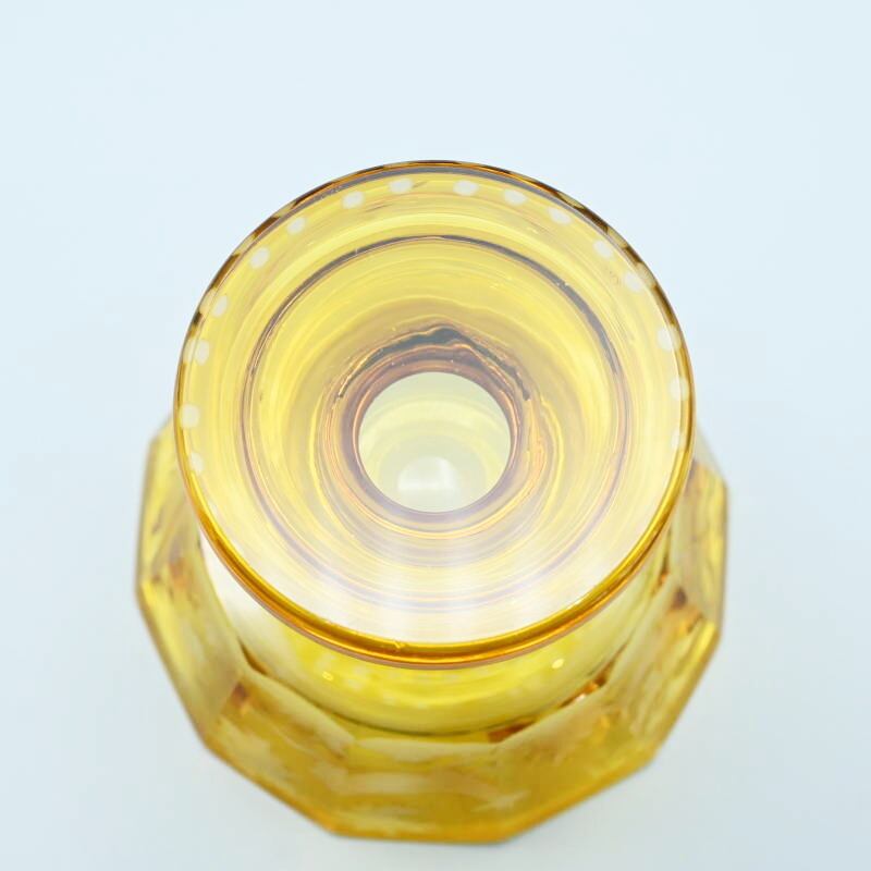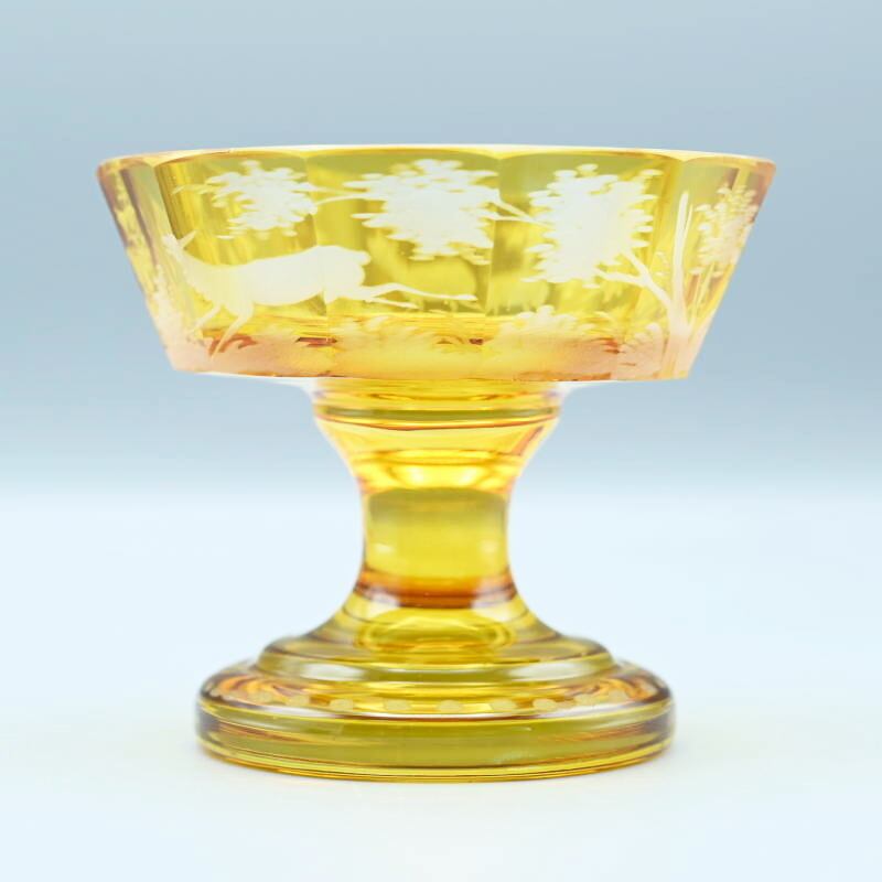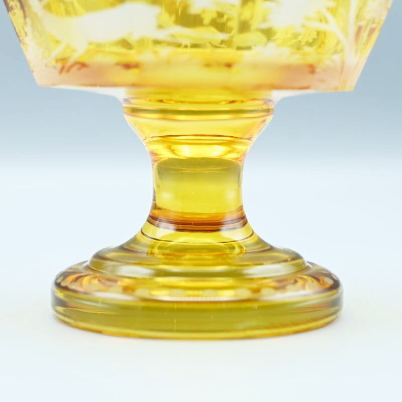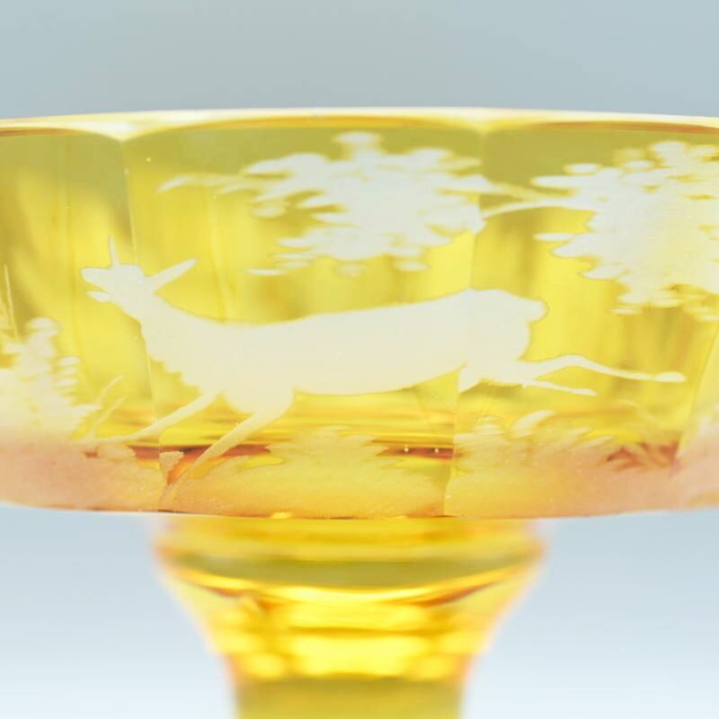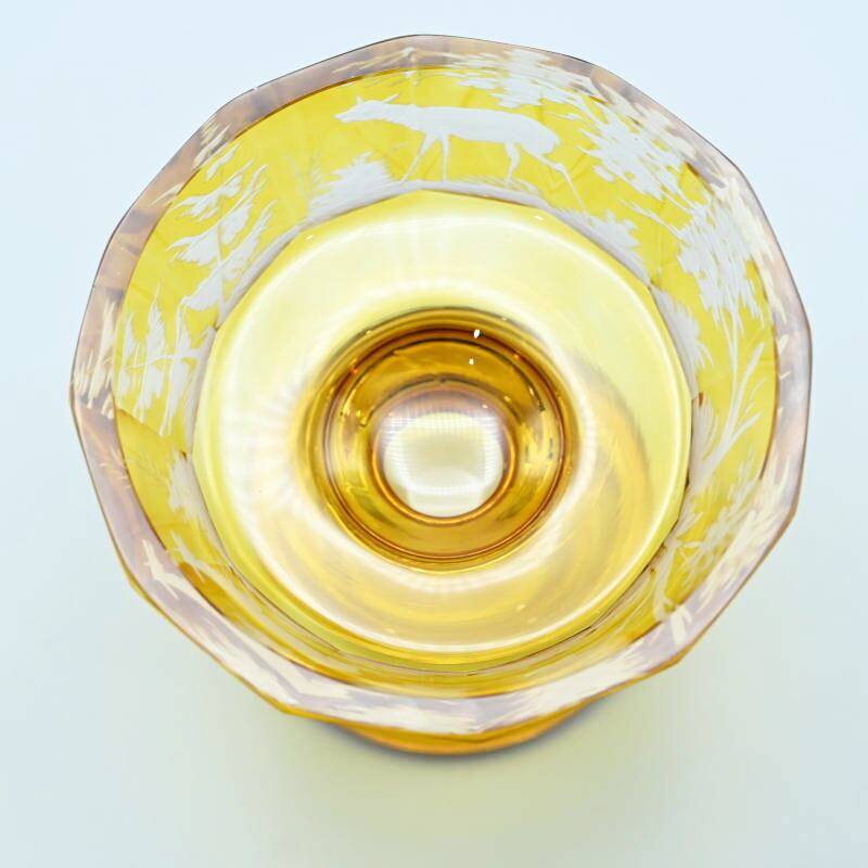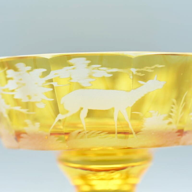 アンバーグラスにグラヴュール技法により鹿文が施されています。