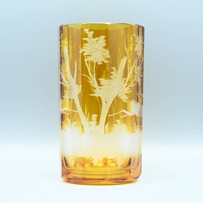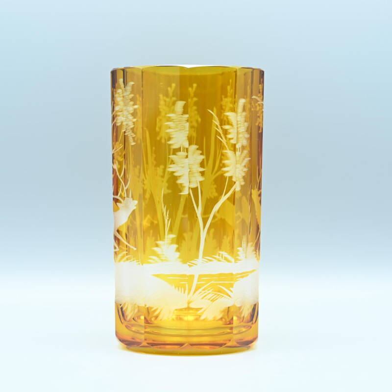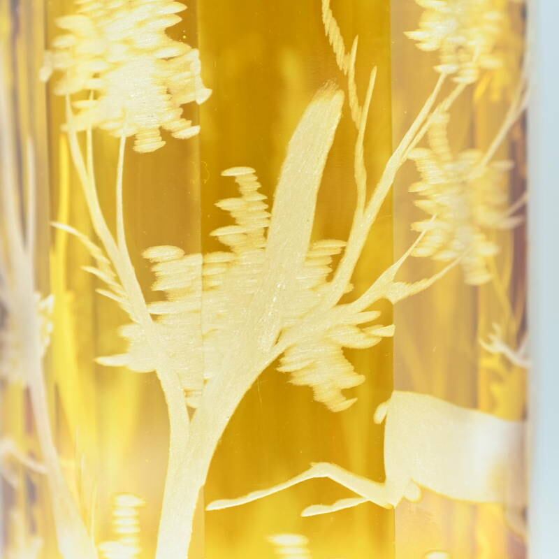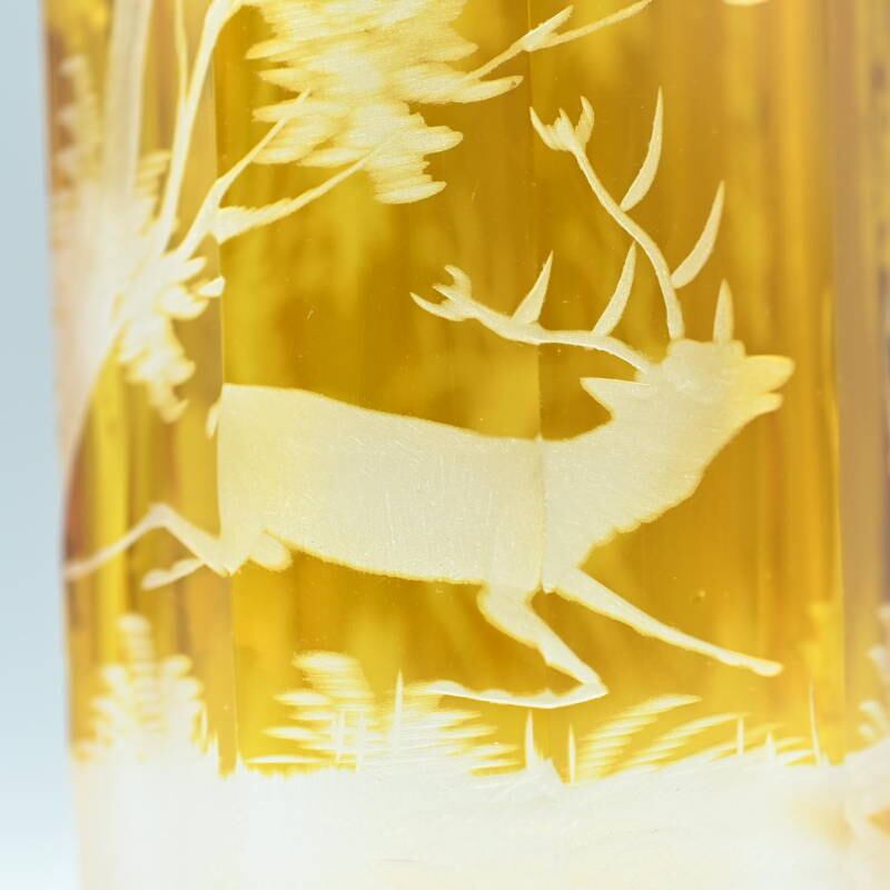 アンバーグラスにグラヴュール技法により鹿文が施されています。