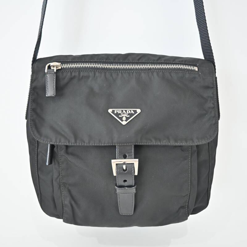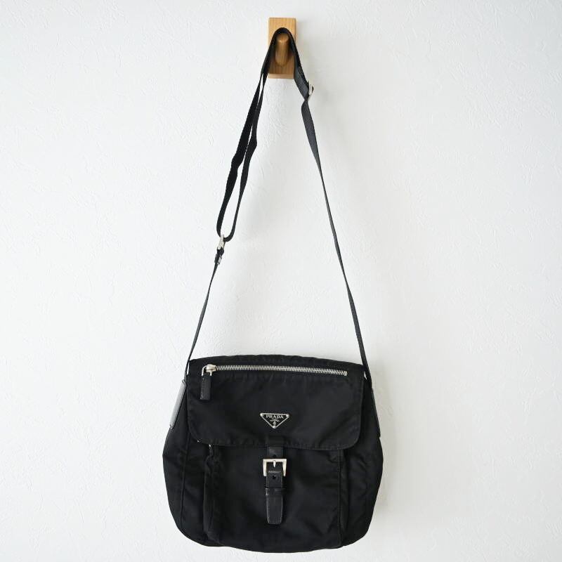 PRADA プラダ ロゴプレート ナイロン/レザ― ショルダーバッグ BT8994 ブラック M07-k062