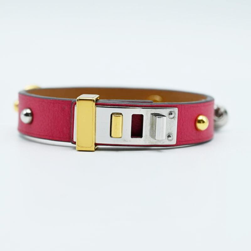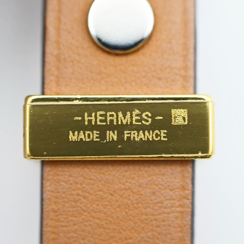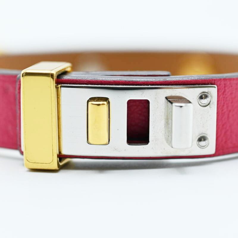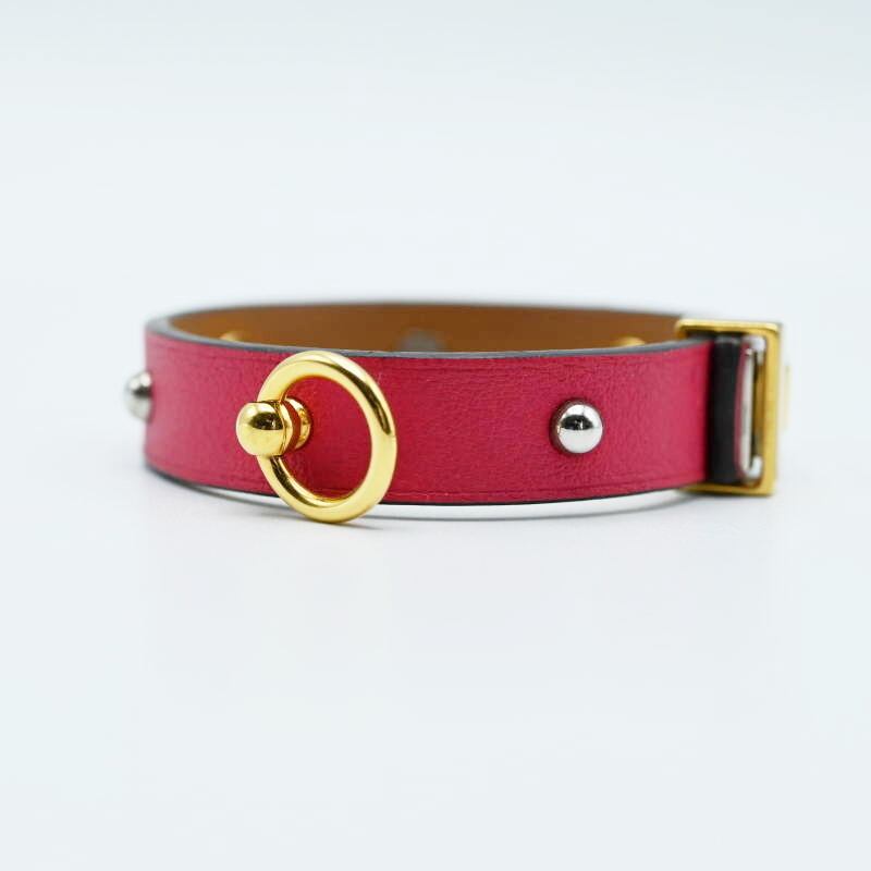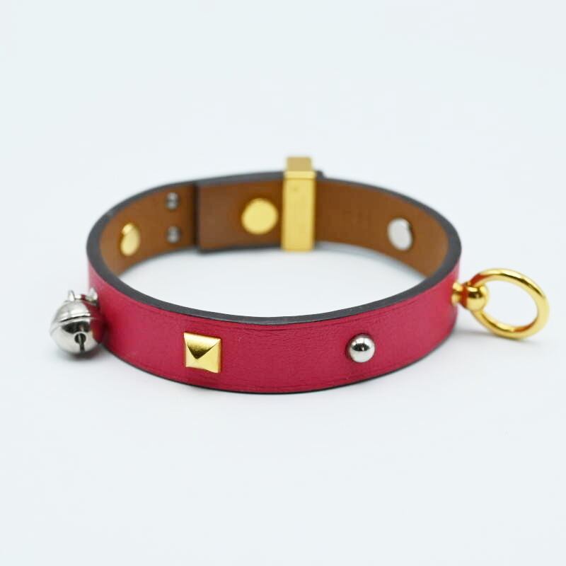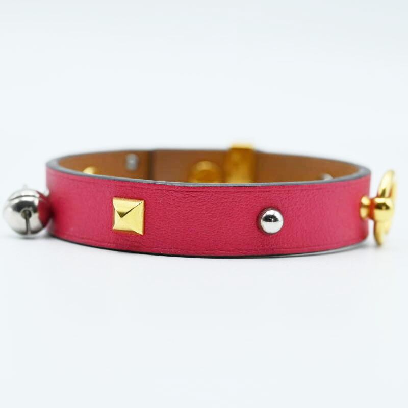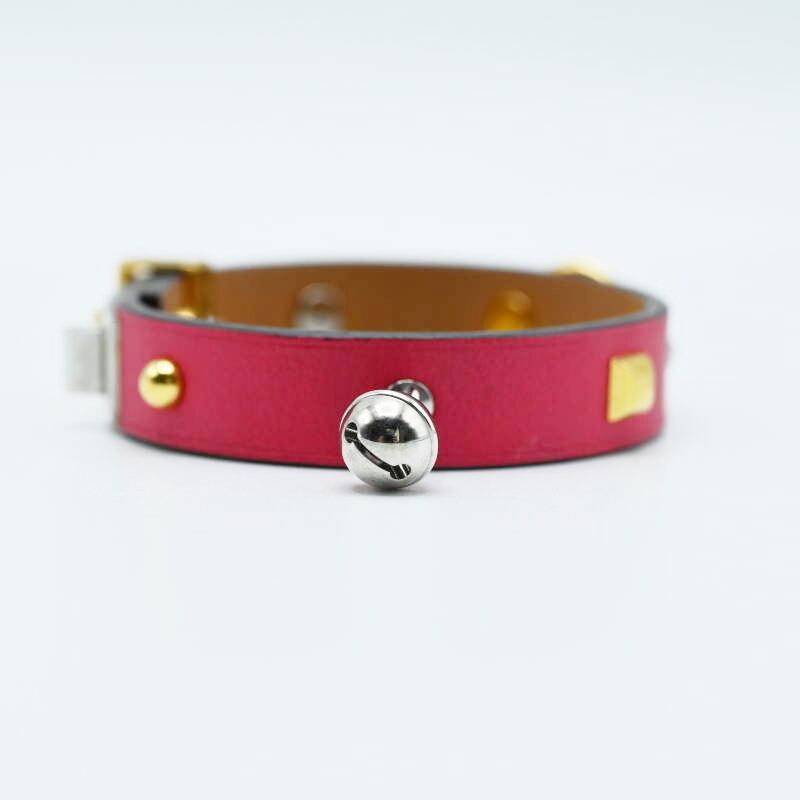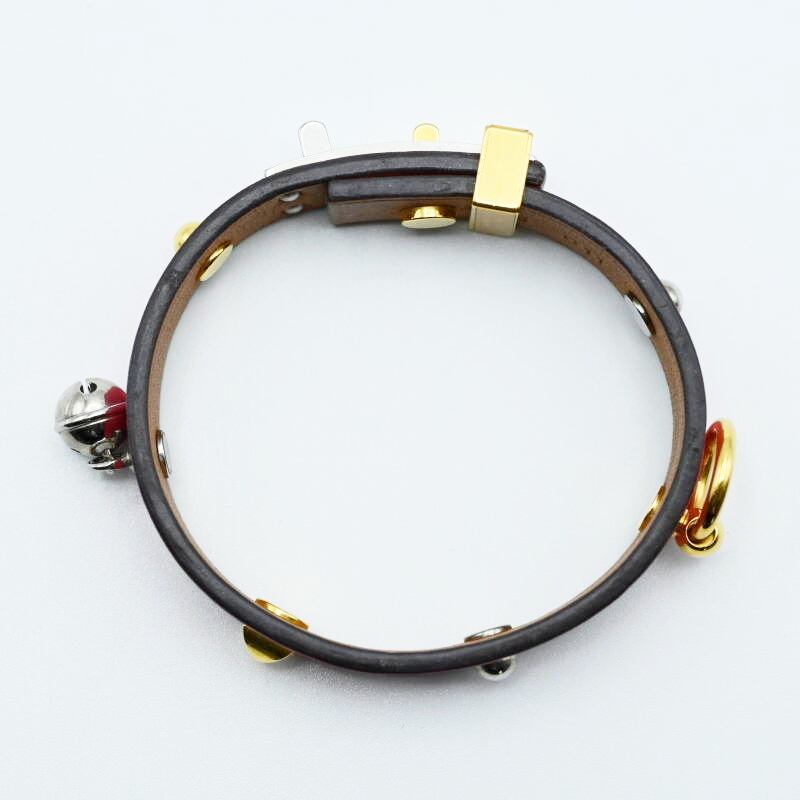 HERMES エルメス ミニ ドッグ スクエアクルー ベル レザー ブレスレット レッド/シルバーxゴールド金具 A刻印 M04-k116