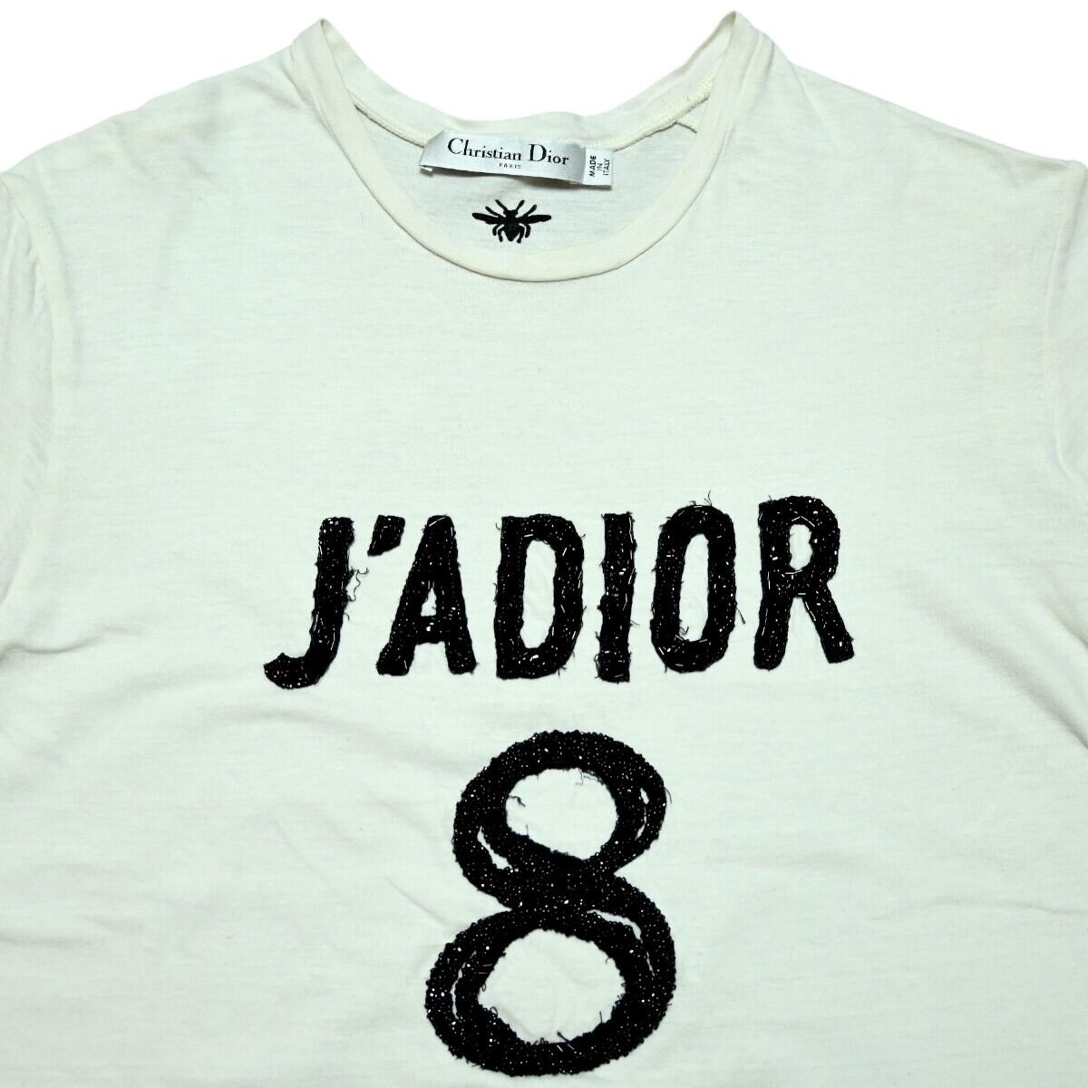 Christian Dior J'ADIOR 8 クリスチャンディオール ジャディオール コットン/麻/ビーズ 半袖Tシャツ XS ホワイト/ブラック T2512-k076
