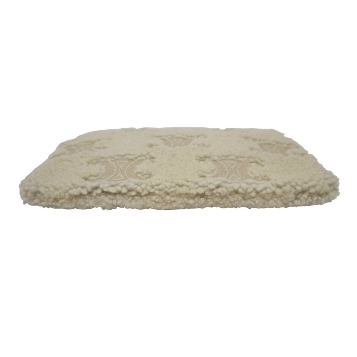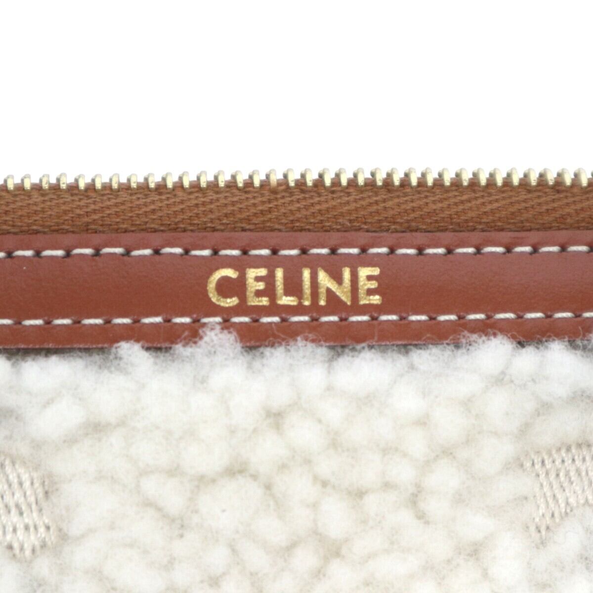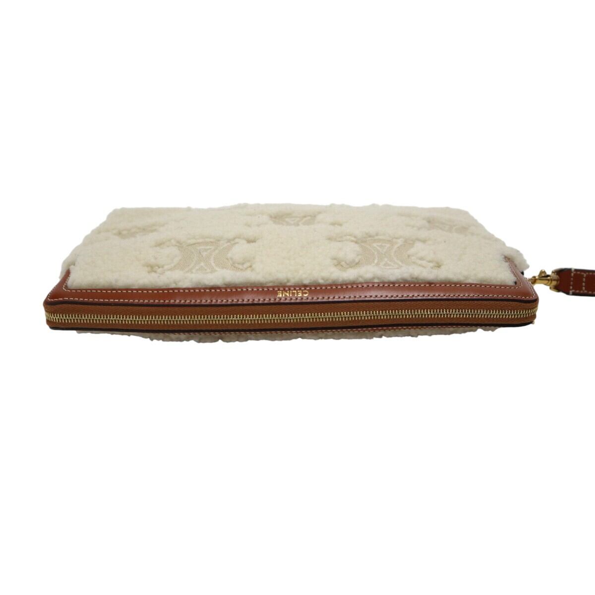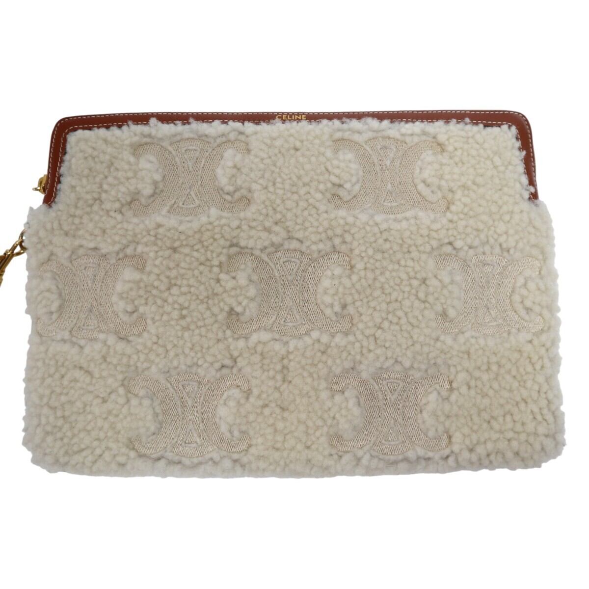 美品 CELINE セリーヌ トリオンフ ムートン/レザー ストラップ付き クラッチバッグ セカンドバッグ アイボリー/チャ M2512-k111