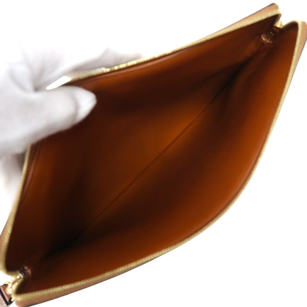 商品名:美品 CELINE セリーヌ トリオンフ ムートン/レザー ストラップ付き クラッチバッグ セカンドバッグ アイボリー/チャ