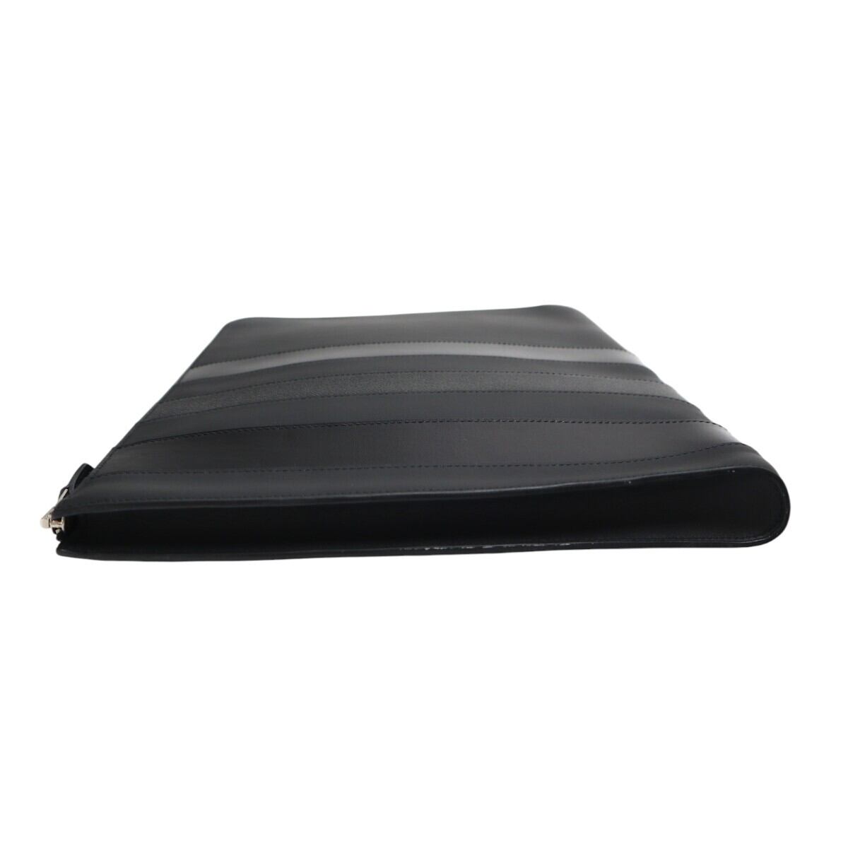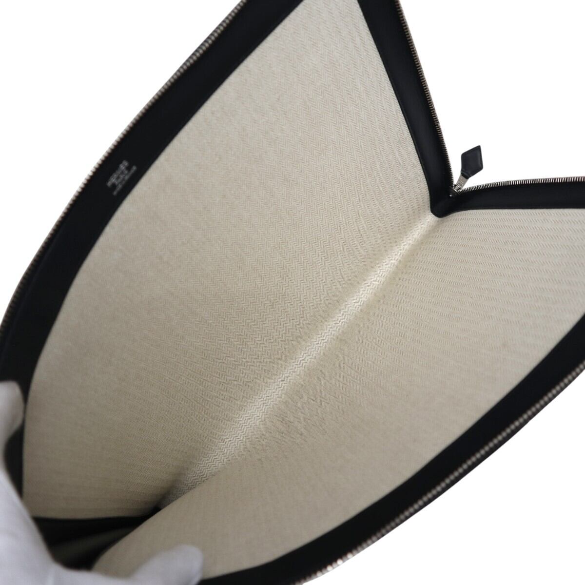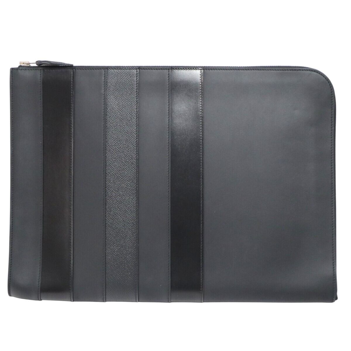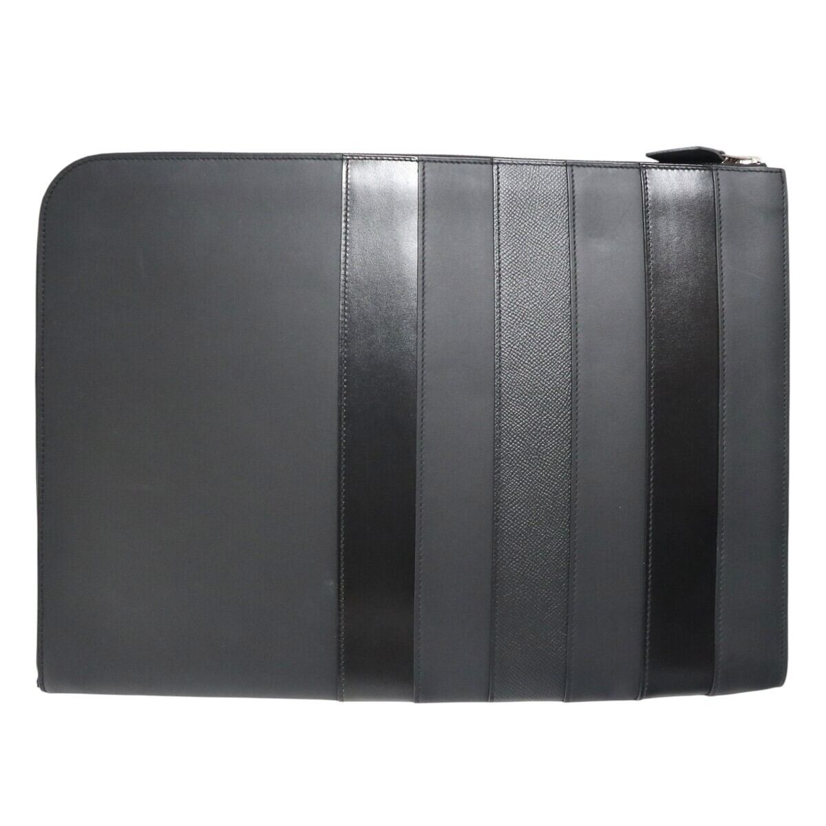 美品 HERMES エルメス ジップコンピューター ストライプ レザー クラッチバッグ ドキュメントケース T刻印 ブラック M2512-k119