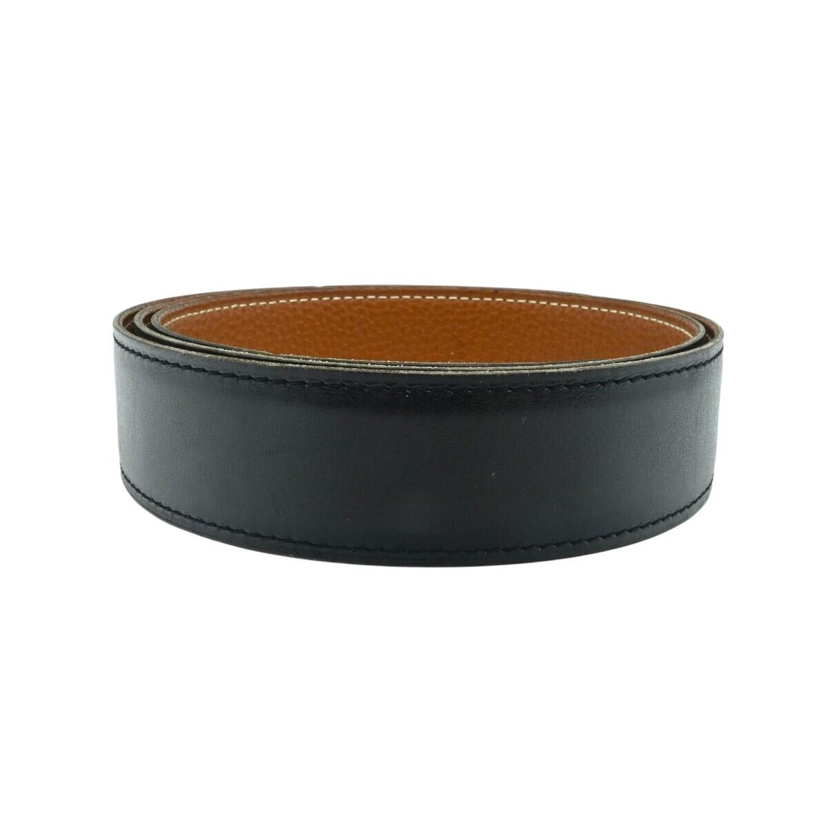 HERMES エルメス レザー 替えベルト バックルなし □K 90 ブラック/チャ M2512-k088