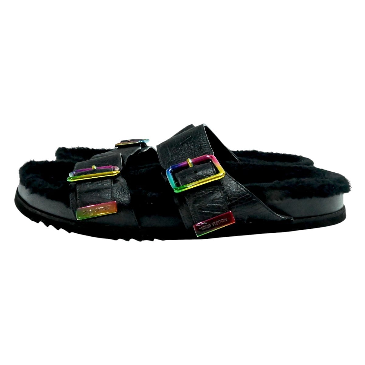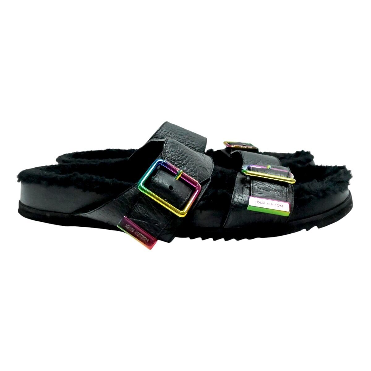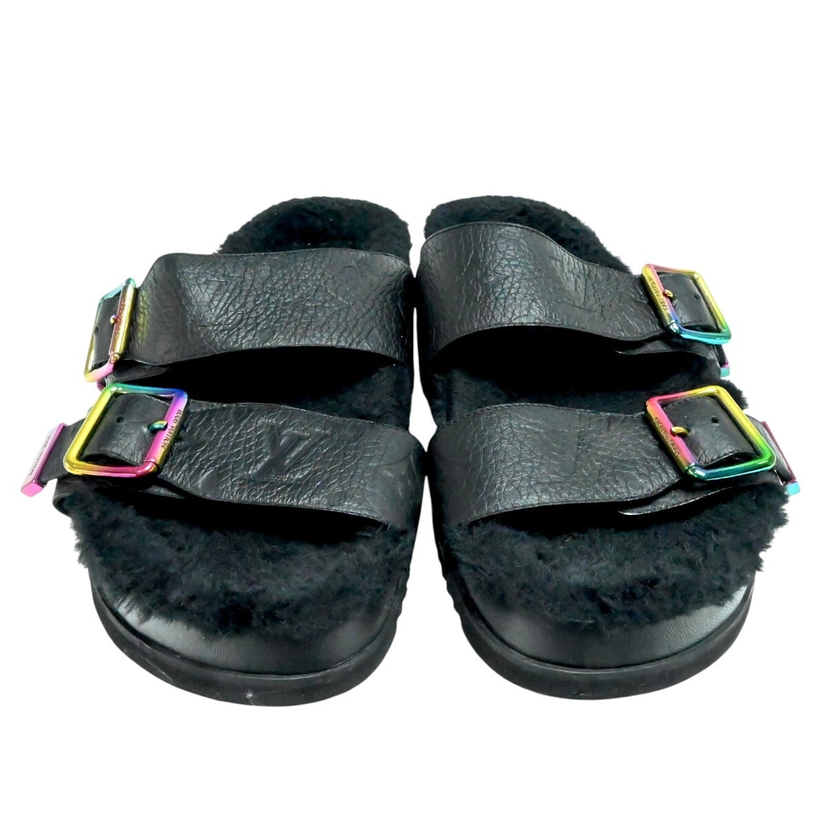 LOUIS VUITTON ルイヴィトン モノグラムアンプラント ミラボーライン レザー/ファー サンダル 8 ブラック/レインボー T2512-k125