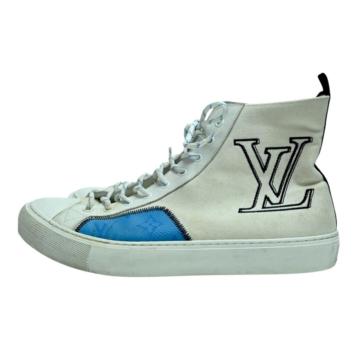 商品名:LOUIS VUITTON ルイヴィトン タトゥーライン キャンバス/PVC/レザー ハイカットスニーカー 9 アイボリー/ブルー/オレンジ