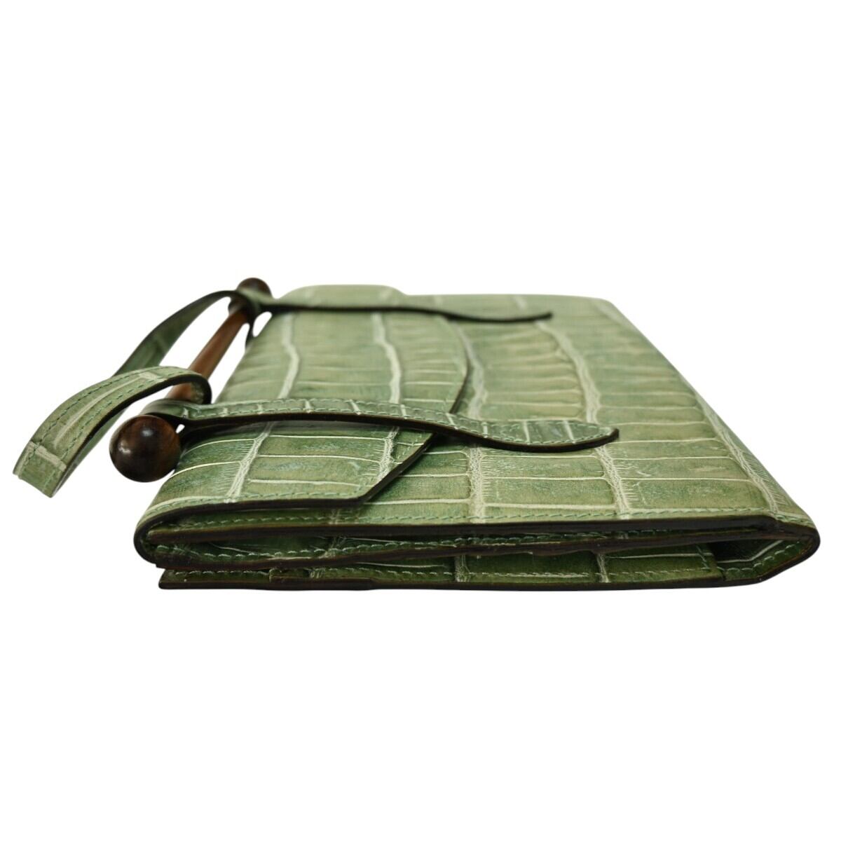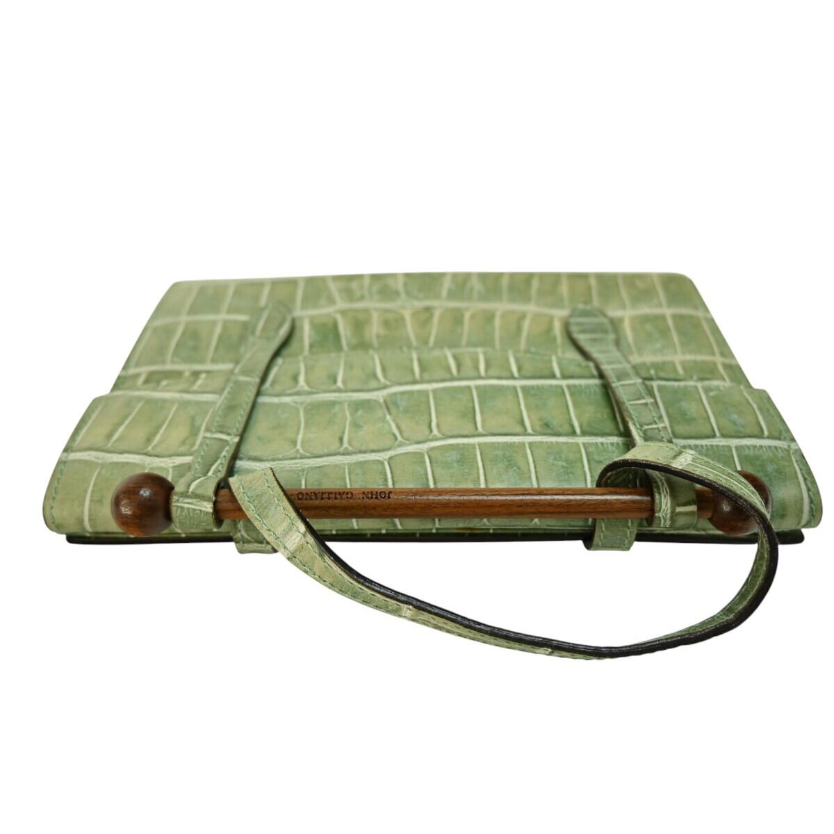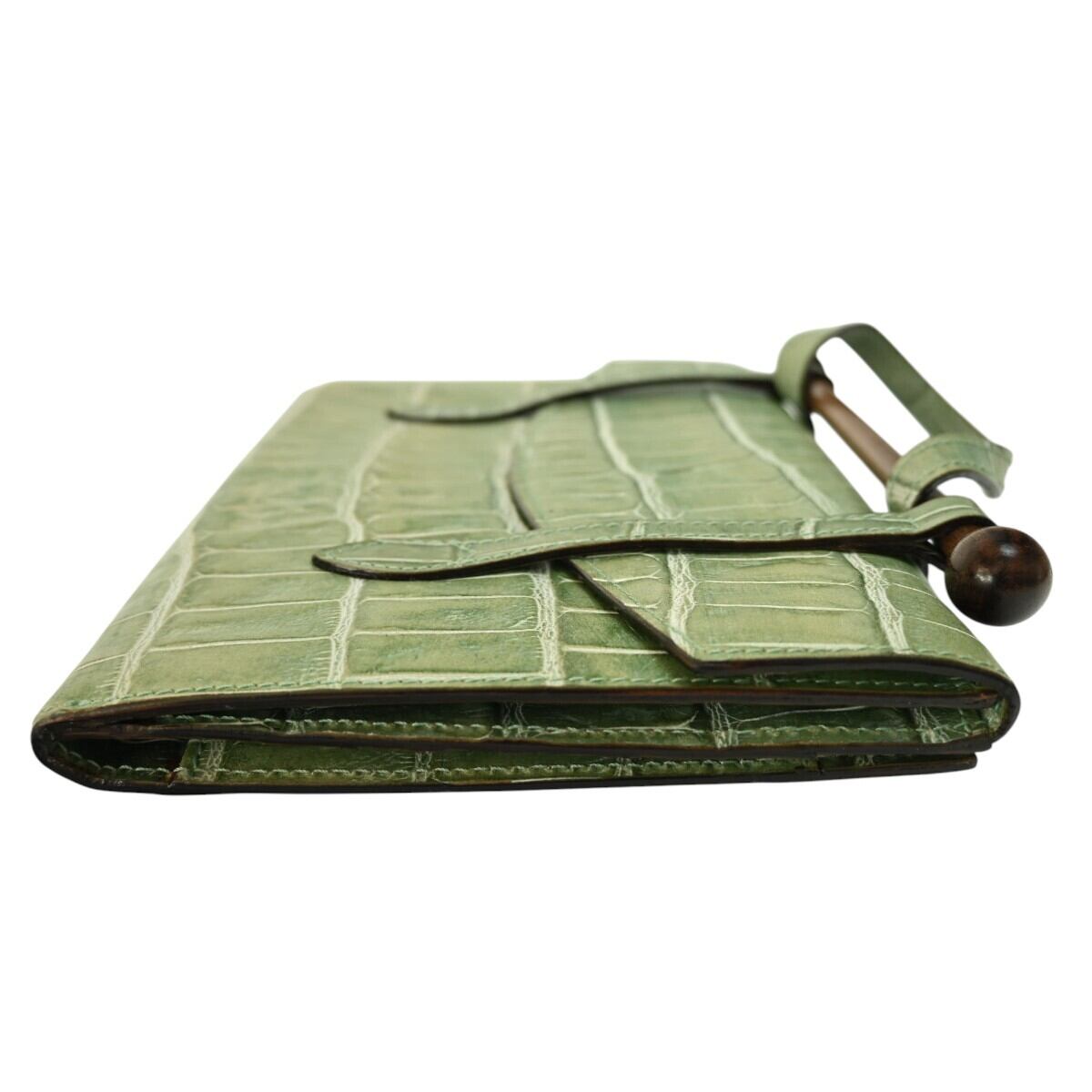 JOHN GALLIANO ジョンガリアーノ クロコ型押しレザー/ウッド カードホルダー/コインケース クラッチウォレット ミントグリーン S2512-k101
