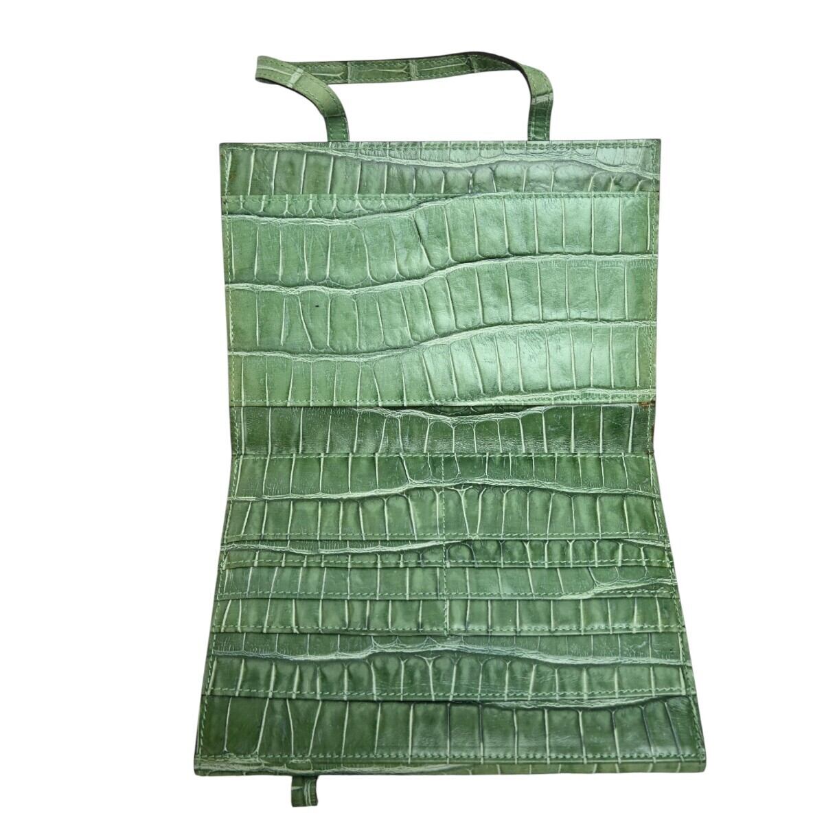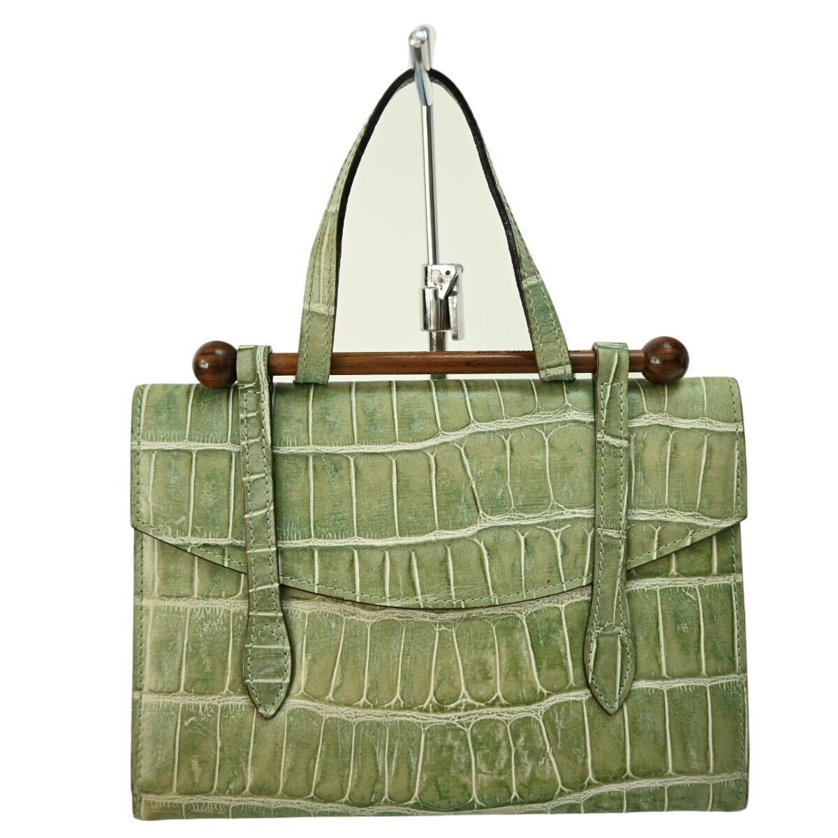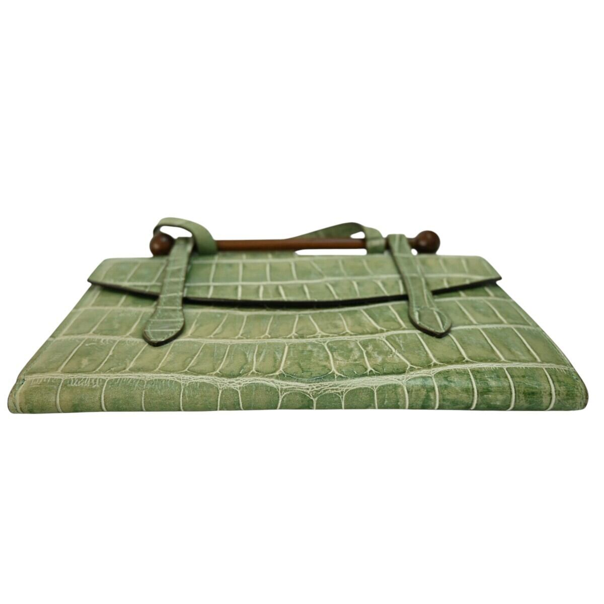 JOHN GALLIANO ジョンガリアーノ クロコ型押しレザー/ウッド カードホルダー/コインケース クラッチウォレット ミントグリーン S2512-k101