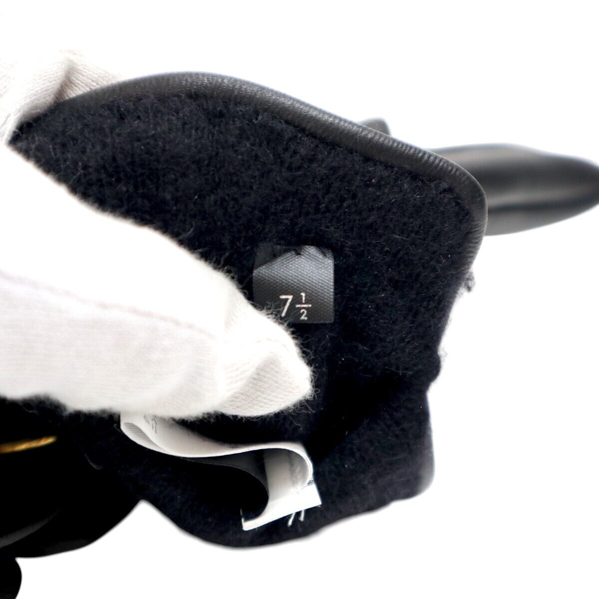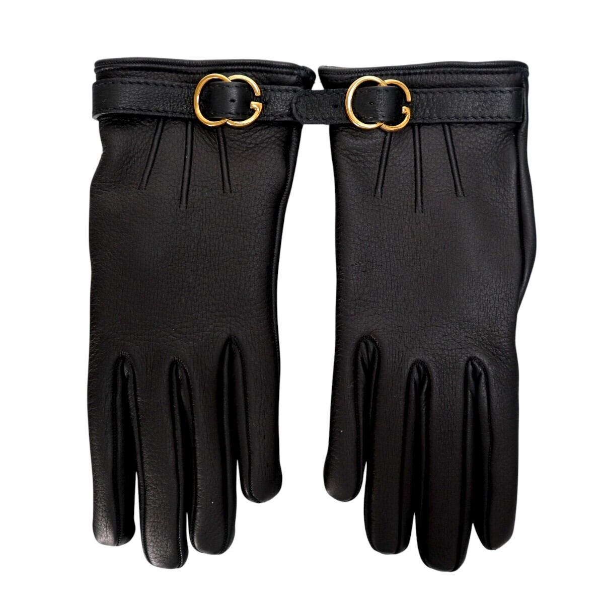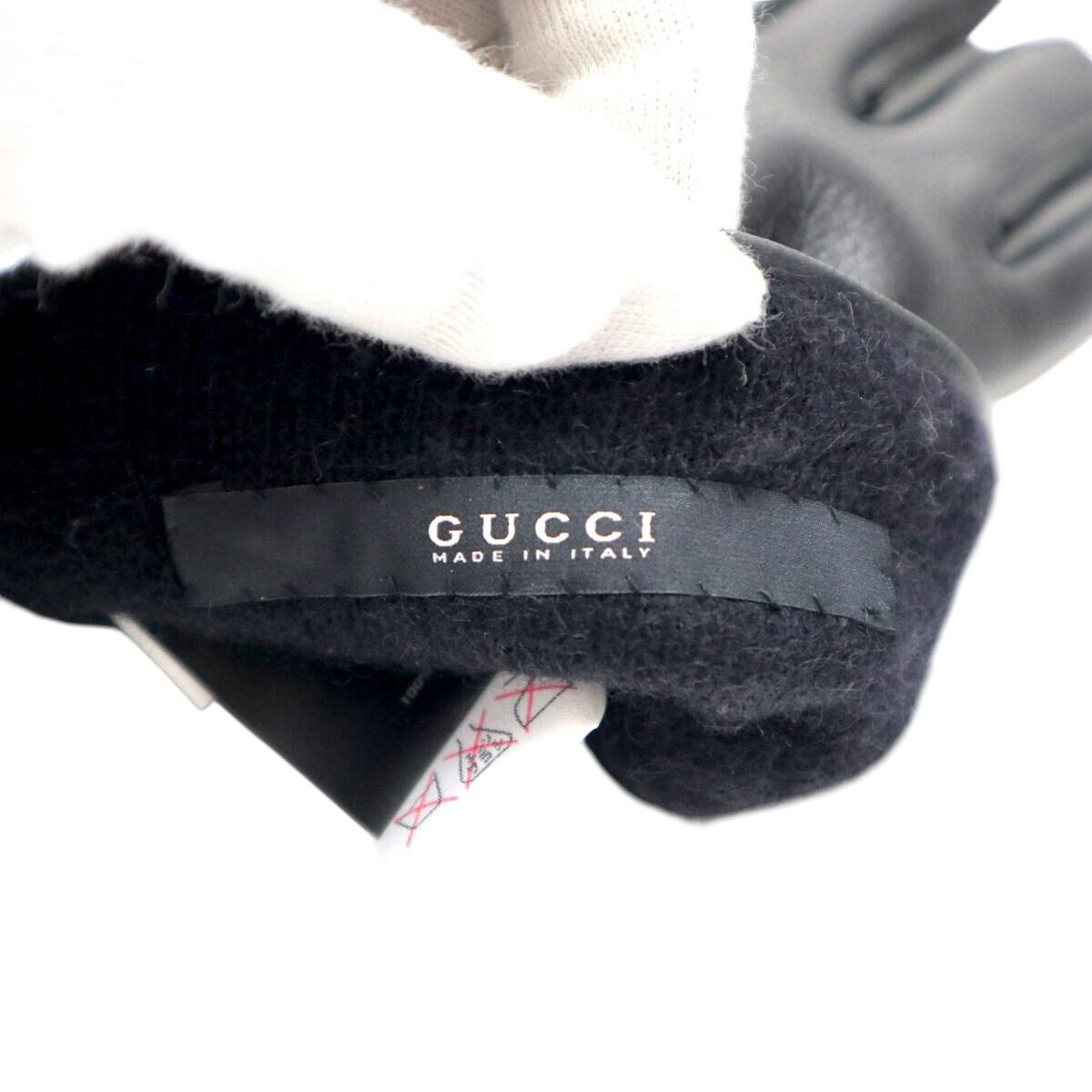 GUCCI グッチ Gバックル レザー/カシミヤ グローブ 手袋 7 1/2 ブラック/ゴールド T2601-k043